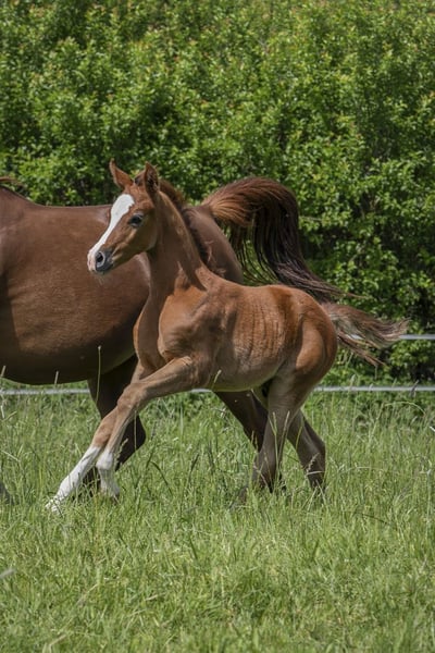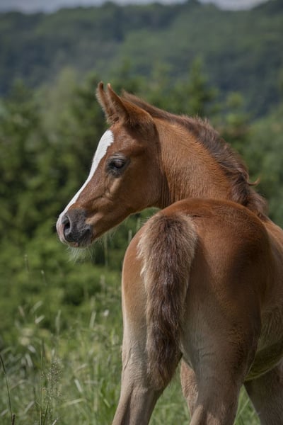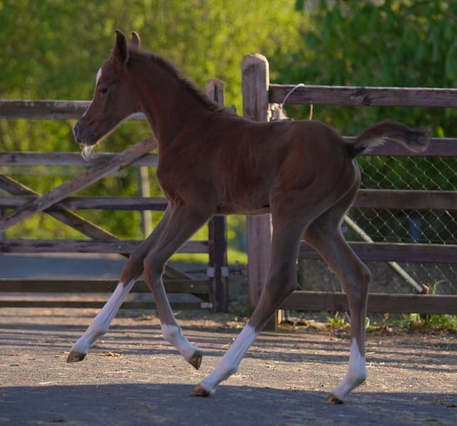 Een hengstveulen met bijzondere uitstraling, een echte blikvanger. Solide en correct, gefokt voor de sport. Zijn moeder is een VZAP-premiemerrie. Zijn vader, A Magic Man of Kossack, was twee jaar lang de hoogst gewaardeerde hengst van zijn jaargang. Hij is ook een VZAP-premiehengst. Onder het zadel is hij rijdbaar en bereid om te presteren. Beide ouders kregen hoge cijfers voor de kwaliteit van hun basisgangen. Hij is robuust en wordt met liefde grootgebracht op grote weiden. Hij zal opgroeien met vier veulens van zijn jaargang. Meer informatie op de Vogelsberg Arabians pagina. Foto's: Marixx Film & Fotografie, Maria Sens