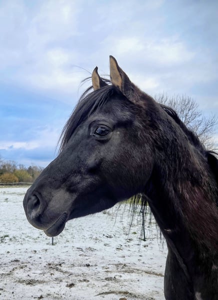 Rashid ist ein lackschwarzer Araberhengst mit fedrigem Langhaar und den typischen elastischen Bewegungen eines Arabers. Er ist witzig und mutig, spritzig und schnell. Er lernt schnell und ist dem Menschen sehr zugewandt. Rashid sucht eine Pflegebeteiligung für 1-2 Tage die Woche, die Lust auf Bodenarbeit hat, Zirkuslektionen, Horsemanship und klassische Handarbeit. Hier ist er weit ausgebildet, beherrscht den spanischen Schritt, Ablegen, Kompliment und Seitengänge an der Hand. Zur Zeit wird er anpiaffiert. Weil er ein sehr leichtes und schmales Pferd ist, wurde er erst kürzlich angeritten. Er geht die Grundgangarten unter dem Sattel, sowie die ersten Seitengänge. Er darf Reiter bis zu einem Gewicht von maximal 65 kg tragen. Als Pflegebeteiligung leistest du einen Kostenbeitrag von 100 Euro und bekommst dafür ein Kontingent an Unterricht, damit du lernst mit Rashid ein tolles Team zu werden. Später gehört auch Reitunterricht dazu. Außerdem gehört ein Stalldienst zu deinen Aufgaben (1-2 Schubkarren Abäppeln). Zum Trainieren steht dir ein Naturreitplatz zur Verfügung und später ein schönes Ausreitgelände direkt am Main. Rashid steht in Klein-Auheim. Im Umgang ist Rashid nicht hengstig. Trotzdem wünsche ich mir jemanden mit Hengsterfahrung oder sicherem Umgang mit Pferden. Ich freue mich auf ein Kennenlernen!