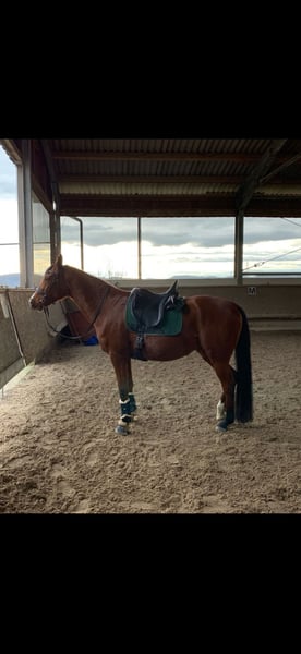I am looking for a loving new home for my 15-year-old mare, Wespa. I have owned her since she was seven years old. I trained her further in dressage, and she became a wonderful horse for trail riding. Unfortunately, two years ago, she was diagnosed with a chronic suspensory ligament injury, which means she can now mainly be used for hacking and perhaps some light ground work. It’s difficult for me to accept that I can no longer ride her as before, and I feel it’s a shame to keep her standing idle in the pasture. Perhaps there is someone out there looking for exactly such a horse? She still has a lot of motivation when hacking and has always been easy to handle. Wespa is accustomed to stable life with daily turnout; she has also been kept in an open stable before, provided the group is suitable. Please feel free to contact me with any questions or if you're interested.