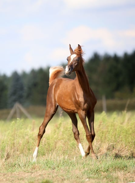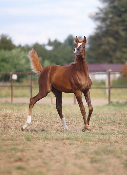 Amazing chestnut filly by World Champion stallion E.S. Harir. Excelent movement, long neck, good build. She may leave for a new home in the fall after weaning from his mother. Now you pay a deposit (Deposit secures until weaning). Registred in WAHO, has passport, DNA test and microchip Located in Poland. We can help arrange transport to your place. WhatsApp 0048692773434 www.zalia-arabians.com