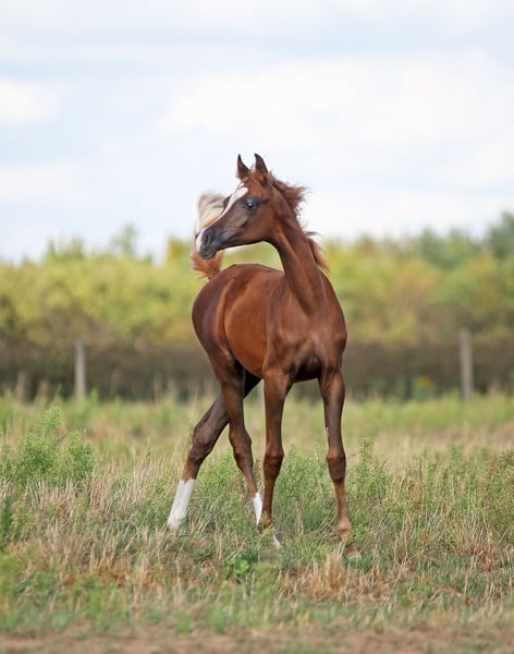 Prachtige kastanjekleurige merrieveulentje van de wereldkampioenhengst E.S. Harir. Uitstekende beweging, lange hals, goede bouw. Ze mag in de herfst, na het afwennen van haar moeder, op een nieuw thuis vertrekken. Nu kunt u een aanbetaling doen (de aanbetaling is gegarandeerd tot het afwennen). Geregistreerd bij WAHO, beschikt over paspoort, DNA-test en microchip. Gevestigd in Polen. Wij kunnen helpen met het regelen van het transport naar uw locatie. WhatsApp 0048692773434 www.zalia-arabians.com