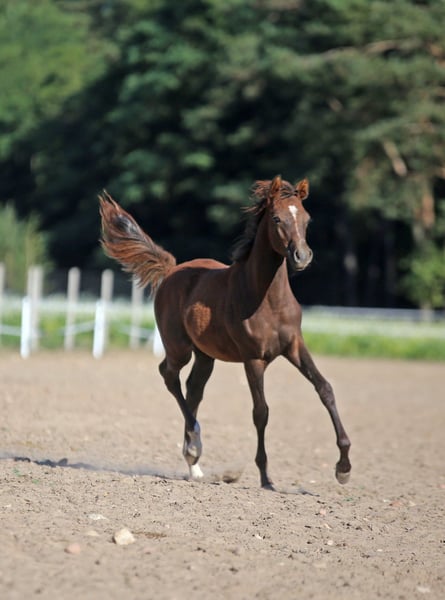 Te koop: Arabische merrie geboren in maart 2025. De merrie wordt groot en beschikt over een uitstekende beweging. Elke maand groeit ze en wordt ze steeds mooier. Een veelbelovende fokmerrie met een zeer goede afstamming: haar vader is Lord Farajj, een zoon van Eks Farajj, en haar moeder komt uit de Grafika-lijn.