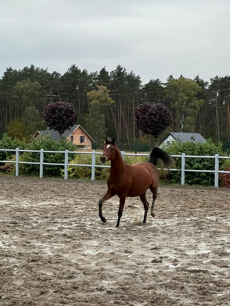 For sale: a beautiful, dark bay Arabian mare with an exotic pedigree D HADDAR (AE) x EKSPULSJA. Born in 2024, she is an elegant-looking mare with a refined appearance. Perfect for breeding, with great potential for reproductive achievements. Ideal for enthusiasts of Arabian horses who value quality and classic elegance. Please contact us for more information!