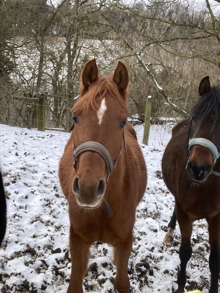 Due to family circumstances, I must reluctantly sell my beautiful Eyota (the Great). She was born with me (2023) and has grown up with peers, familiar with stalls, open stables, and pastures. Eyota is very affectionate and cuddly, loves to be groomed, walks nicely on the lead, and stands calmly for the farrier. She has no bad habits and is well-mannered. Eyota could certainly stay for further upbringing if desired. She will be approximately 155cm tall, comes from old, healthy lines, and would surely make a great riding horse. Both parent horses are ridden, wonderfully clear-headed, and have reliably passed this on to Eyota. She is a beautiful dark chestnut with a light mane. Naturally, she is regularly vaccinated, dewormed, and microchipped! Eyota also has full papers. Price is negotiable. Transport is possible. Please only serious inquiries. Feel free to contact me via WhatsApp or call.