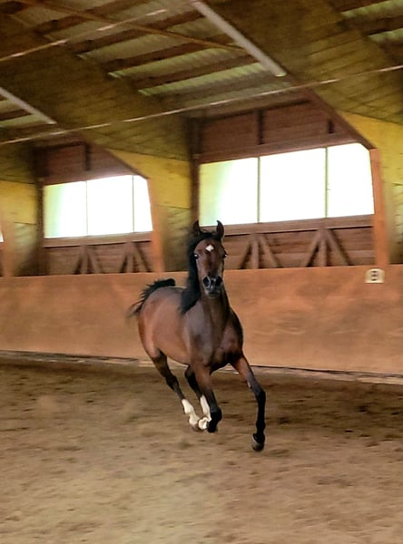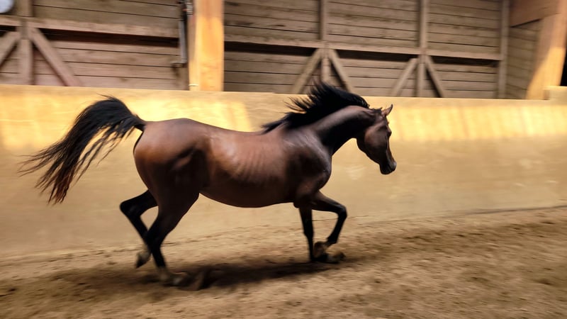 The 3-year-old beautiful Arabian mare is being offered at a low price due to a reduction in breeding. She is gentle to handle and has no vices! She is not only a pleasure to look at but also fun to work with! She is familiar with groundwork, lunging, and has already been introduced to the saddle. She is clear-minded, diligent, and always eager to please. We can very well imagine her in endurance sports or as a leisure horse or broodmare. With her great qualities, she is a true all-rounder, and joy is guaranteed! If you are interested, feel free to call or simply write!