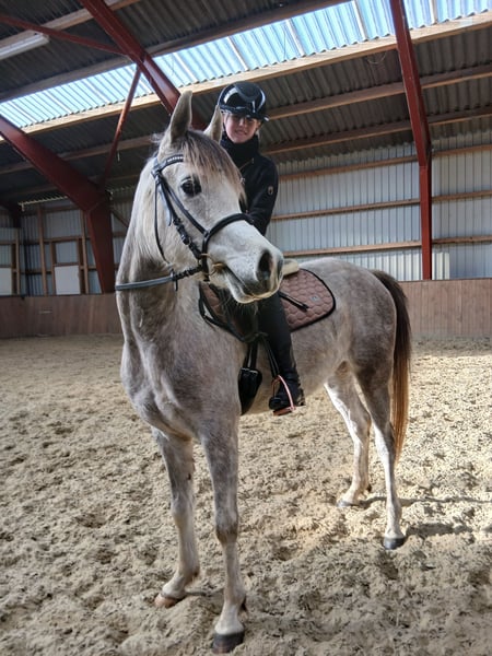 Started under saddle in November 2025. She has been very easy throughout her learning. Has been driven in trailer to the riding hall during the training and is used to being ridden alone and with another horse. She has been ridden by both a 12 year old girl and an adult rider. She is used to all daily handling. Has been elected in the Danish Sports Pony Association with good results.