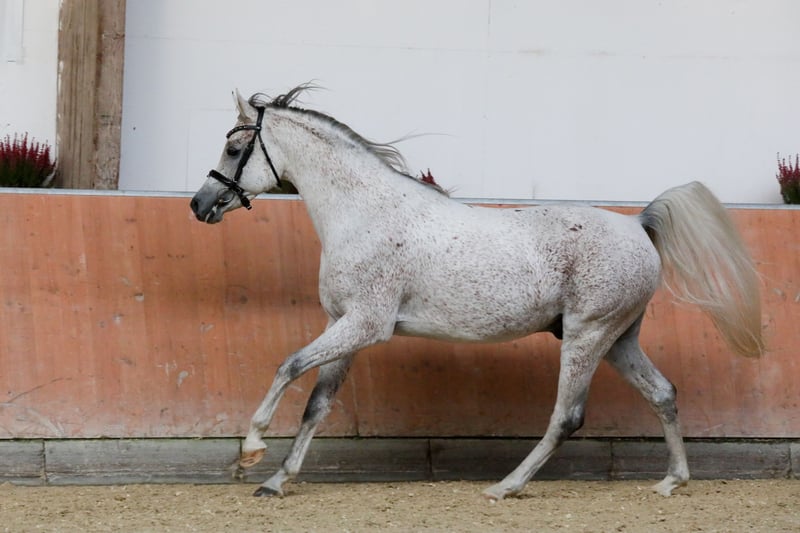 Mireya ha sido criada con el objetivo de convertirse en un buen caballo de monta. Proviene principalmente de líneas rusas. De esta línea materna, hemos tenido caballos que compiten en el deporte de resistencia hasta LDR, en doma hasta la clase S y en deportes de ocio. Dependiendo de cómo se les fomente, ofrecen un amplio espectro de posibilidades. El padre, A Magic Man of Kossack, fue el semental mejor valorado de la asociación durante dos años consecutivos. Para obtener información más precisa y siempre actualizada, se puede visitar la página web de los árabes de Vogelsberg. Mireya ha crecido en grandes praderas en manadas mixtas. Hasta ahora ha llevado una vida sin estrés y ha tenido un trato cariñoso con los humanos. Confía en nosotros y reacciona de manera muy sensible en el manejo. En la jerarquía, se encuentra más bien en el medio.