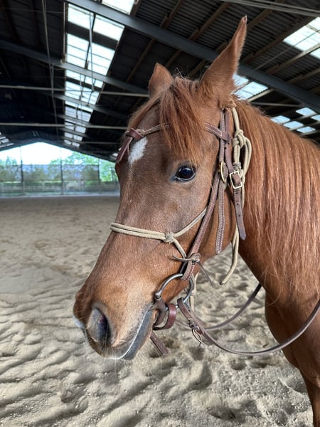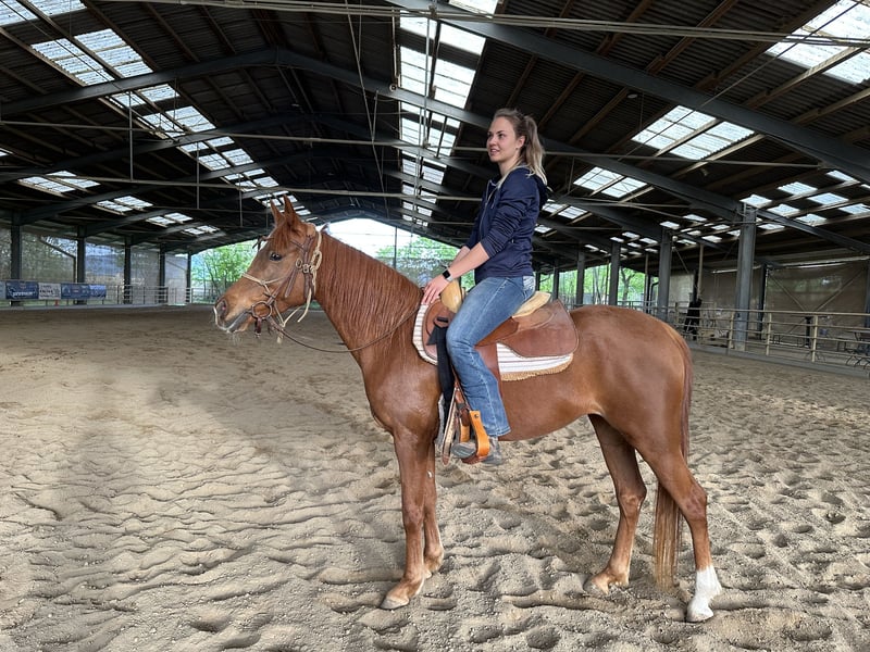 C'est avec un cœur lourd que je me sépare de ma jument arabe asil Ezza al Rius en raison d'un manque de temps et de raisons familiales. Elle allie une personnalité extrêmement amicale et ouverte à une grande intelligence et beaucoup d'énergie. Elle apprend très vite et souhaite travailler et être stimulée. Elle a un fort "will to please" et réagit de manière très sensible aux aides. De plus, elle a de beaux mouvements amples. Elle a été débourrée professionnellement et attend maintenant son humain avec qui elle pourra continuer à se développer. Comme c'est généralement le cas avec les pur-sangs arabes, elle n'est pas un cheval pour débutants. Un cavalier ayant déjà de l'expérience avec des pur-sangs serait idéal. Bien qu'Ezza ait été débourrée en western, nous pouvons également très bien l'imaginer sous une selle anglaise ou une selle de randonnée. Elle provient d'une lignée de distance et serait donc adaptée tant pour des randonnées de distance que pour des sorties de loisir plus longues.