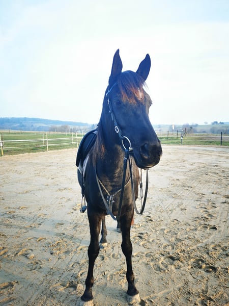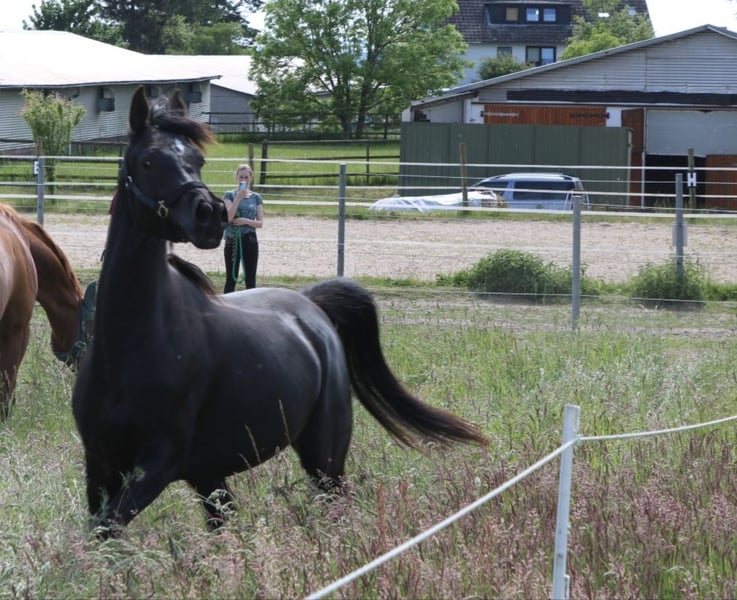 Zum Verkauf steht eine wunderschöne, rein ägyptische Vollblutaraber-Stute, geboren im Februar 2019. Sie ist artgerecht aufgewachsen und hervorragend sozialisiert. Ballora überzeugt durch ihr ehrliches und unerschrockenes Wesen. Mit einem Stockmaß von 153 cm ist sie perfekt für Freizeitaktivitäten geeignet und zeigt viel Potenzial für den vielseitigen Einsatz. Sie verfügt über schöne Grundgangarten, kennt die Arbeit auf dem Platz ebenso wie entspannte Ausritte. Ballora ist zuverlässig im Umgang und absolut klar im Kopf. Sie ist gesund, regelmäßig geimpft und entwurmt und frei von bekannten Krankheiten. Schweren Herzens suche ich für Ballora ein neues, wertschätzendes Zuhause. Die Entscheidung fällt mir nicht leicht, da sie mich schon seit ihrer Fohlenzeit begleitet, aber aus persönlichen Gründen kann ich ihr aktuell nicht mehr die Zeit und Aufmerksamkeit schenken, die sie verdient. Ich wünsche mir für sie jemanden, der ihr ein langfristiges, stabiles Zuhause bietet, sie weiter fördert und Freude an feiner Kommunikation hat. Bei Interesse stehe ich gerne für weitere Informationen zur Verfügung. Ein persönliches Kennenlernen ist jederzeit möglich. Passendes Equipment kann zusätzlich erworben werden.
