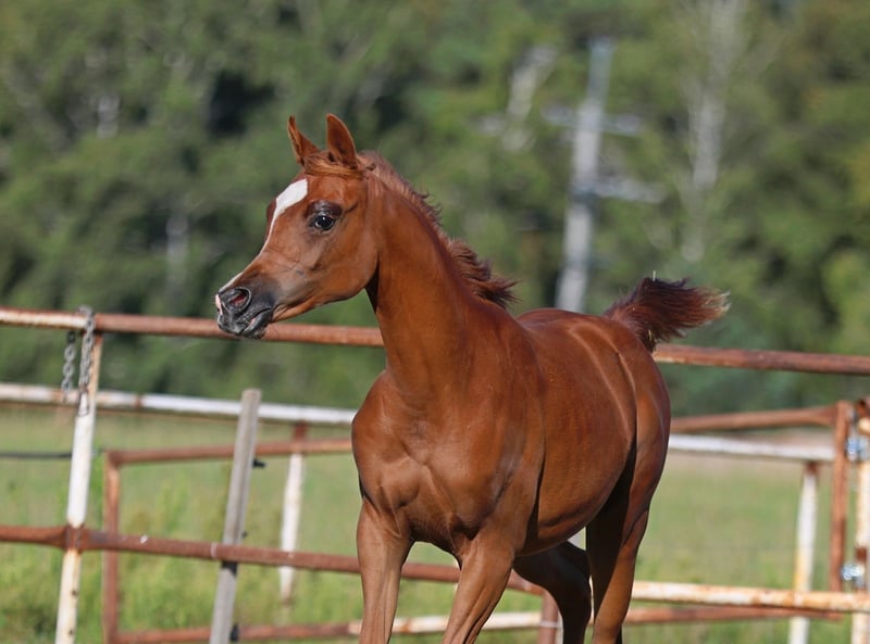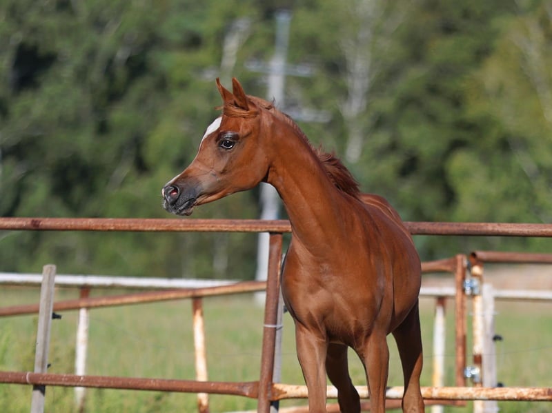 We offer for sale ALESSIA 2025. chestnut marea Father: Psytadel by Padrons Psyche Mother: RK ASRAAR by EKS Amir Filly heatlhy, registred in WAHO, have microchip. Located in Poland Transport anywhere easy to arrange in good price.