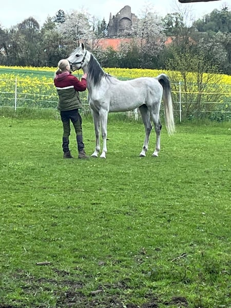 Wir haben einen rein ägyptischen Wallach unseres Rapphengstes NOIR KHAZAR zu verkaufen! Zwei Rappstuten von Noir Khazar sind nach ÄGYPTEN verkauft. Saleems Bruder, der Rappe Salaadin Khazar ist Top Five Hengst und National Champion in Italien. SALEEM Khazar ist ruhig und selbstbewust ,er hat den einmaligen, menschenbezogenen Charakter seines Vaters mit überragenden Bewegungen und top Ausstrahlung. Seine Mutter Salaamah stammt aus der Elitestute BINT IMAN EAO die direkt aus ÄGYPTEN nach Deutschland importiert wurde.Abstammung