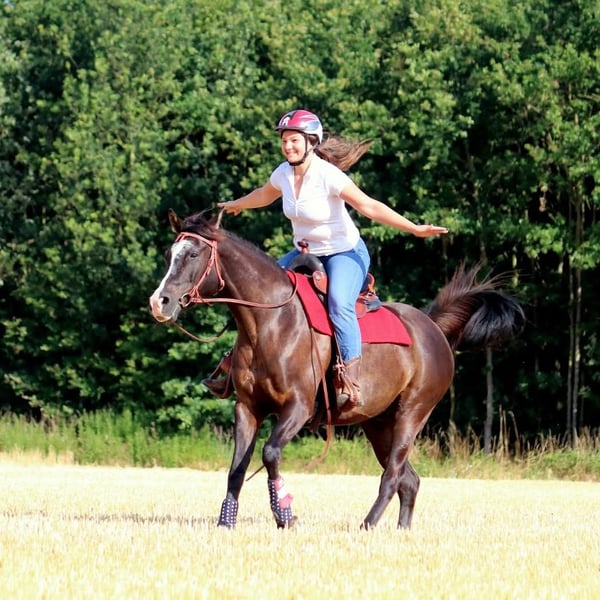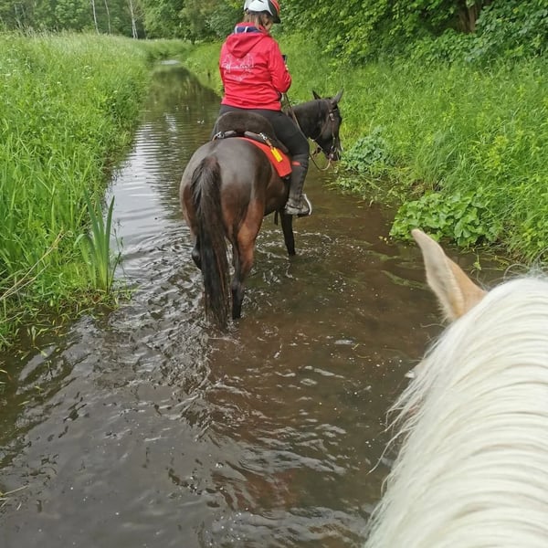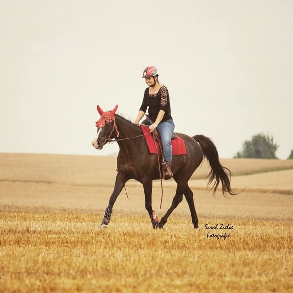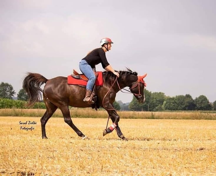 Westerngerittenes Arabisches Vollblut, das vor allem eines liebt: gemeinsam mit seinem Menschen die Welt zu entdecken. Stundenlange Ausritte durchs Gelände sind genau sein Ding – ruhig, neugierig und mit einem großen Herzen bei der Sache. Ob alleine oder in Gesellschaft, er genießt jede Minute draußen. Doch nicht nur im Sattel ist er ein Schatz. Bodenarbeit und Freiarbeit machen ihm genauso viel Freude. Er ist aufmerksam, verspielt und unglaublich feinfühlig – oft eher wie ein großer Hund als ein Pferd. Er sucht die Nähe, liebt die gemeinsame Zeit und baut eine enge Bindung zu seinem Menschen auf. Seit seinem zweiten Lebensjahr ist er bei mir und wurde stets mit viel Liebe und Geduld begleitet. Er ist brav beim Tierarzt, beim Schmied und lässt sich problemlos verladen – einsteigen, losfahren, ankommen und gemeinsam Spaß haben ist für ihn ganz selbstverständlich. Er hört fein auf Stimme und Gewichtsverlagerung, ist motiviert und für jeden Spaß zu haben. Gleichzeitig ist er sensibel und braucht einen Menschen, der ihm Sicherheit gibt, ihn versteht und ihm mit Ruhe und Klarheit begegnet. Aktuell ist er einer Bekannten für den Distanzsport zur Verfügung gestellt.(55758) Im Rahmen von intensivem Training ist aufgefallen, dass er bei hoher Belastung unregelmäßig für kurze Momente taktunklar läuft. Im Alltag und bei normaler Beanspruchung zeigt er sich jedoch unauffällig und gesund. Mir ist es wichtig, das offen zu kommunizieren – denn er verdient einen Platz, an dem er so angenommen wird, wie er ist. Am vergangenen Osterwochenende lief er seinen zweiten Distanzritt bei dem er mit sehr guter Bewertung durch die Tierarztkontrolle kam. Sein Gang wurde lediglich als "Spezial Move" betitelt. Ich wünsche mir für ihn einen Menschen, der sein großes Herz zu schätzen weiß, ihm Sicherheit gibt und ihn nicht nur als Reitpferd sieht, sondern als treuen Partner. Er ist kein „Pferd von der Stange“. Er ist etwas ganz Besonderes. Er ist absolut sozial und kam bis jetzt immer sehr gut mit allen Pferden aus. . Er möchte etwas tun und ist kein Pferd für nur mal am Wochenende gemütlich im Schritt um den Block. Bei genügend Förderung aber keiner Überforderung ist er ein absoluter toller und cooler Partner und geht mit seinen Menschen durch dick und dünn. Auf Kursen und Ausflügen war er immer ein absolutes Verlasspferd. Er zeigt keine Unarten wie beißen, steigen oder Buckeln. In den letzten drei Jahren haben wir den Fokus im Sattel mehr auf das Gelände als auf die Platzarbeit gelegt. Dementsprechend ist er da etwas eingerostet im Thema Gymnastizierung. Vom Boden aus habe ich ihn natürlich weiterhin sehr gefördert. Vom Boden aus ist er ein richtiges Vorzeigepferd in Thema Freiarbeit und Bodenarbeit. Dies bereitet ihm auch sehr viel Freude. Sehr begabt war er früher auch in der Trailarbeit. Dort sehe ich auch Potenzial. Als reines Anfängerpferd würde ich ihn nicht sehen. Unser Gelände ist sehr steinig und er hatte deswegen die letzten Jahre immer Hufschuhe und jetzt zum Schluss Duplos. Ich gebe ihn aufgrund von Lebensverändernden Umständen schweren Herzens ab. Weder Händler noch Reitvereine bekommen ihn. Er ist ein Pferd für einen, maximal 2 Menschen und verdient es ein für immer zu Hause zu bekommen. Im Umgang mit meiner kleinen Tochter war er lieb, aber als Kinderpony sehe ich ihn nicht. Charakterlich ist er ein absoluter Schatz.Sanft, mutig, sehr sozial und immer bemüht, alles richtig zu machen. Er reagiert auf feinste Hilfen und ist dabei ehrlich und klar im Kopf. Wunschzuhause: Offenstall oder sehr bewegungsfreundliche Haltung mit freiem Zugang zum Heu und einer eher kleineren Gruppe. Aber auch mit Box über Nacht und ganz viel Auslauf kommt er gut klar. Weniger als 6 Stunden Auslauf am Tag reichen ihm jedoch nicht. Wenn du auf der Suche nach einem besonderen Pferd mit viel Potenzial und Herz bist, freue ich mich sehr über deine Nachricht.