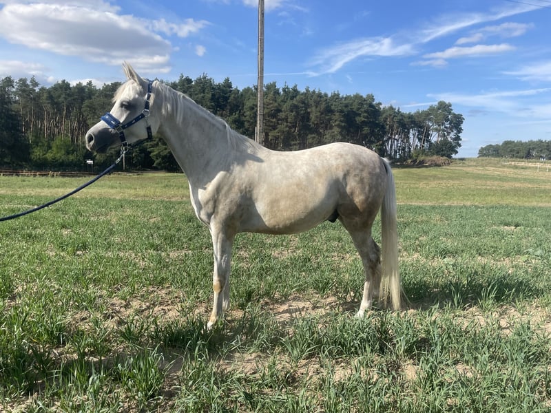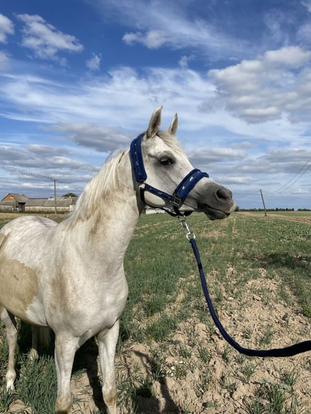 • For sale is a six-year-old Arabian gelding. • Pony type, enjoys human contact (once he gets to know you). • Moves freely in all three gaits both in the arena and in the field. He can navigate poles and small jumps both on the ground and on the lunge line. Has competed in leisure competitions and jumps up to 60 cm, but with his previous owner, only up to 50 cm. Sensitive to the calf and gentle on the bit. He rides in a bridle and halter. On the lunge line, he responds to voice commands as well as to the whip aid, can change direction smoothly, and perform transitions. He has also been lunged without a lunge line. Occasionally, he can buck, but usually out of excitement, for example after a long time in the field. He does not rear or buck. He can ride alone in the terrain or in a group, both as a leader and in a herd. He sometimes panics but is also curious, which makes it easier to guide him past frightening objects. He cooperates during groundwork but can be stubborn; in such cases, only a firm and calm approach will succeed. He is very alert, so during training with many stimuli, he may find it challenging to focus. • Gentle in the herd. Does not bite or kick. Well-behaved with the farrier and during other procedures. Regularly dewormed, vaccinated, and recently had his teeth done. • Ready for further training! • Not suitable for children or riding schools. • Videos of riding available via WhatsApp or private message. • Trial ride for 50 PLN. • Sold only with a custom-made saddle! He has a specific build, making saddle fitting difficult. Not included in the price.