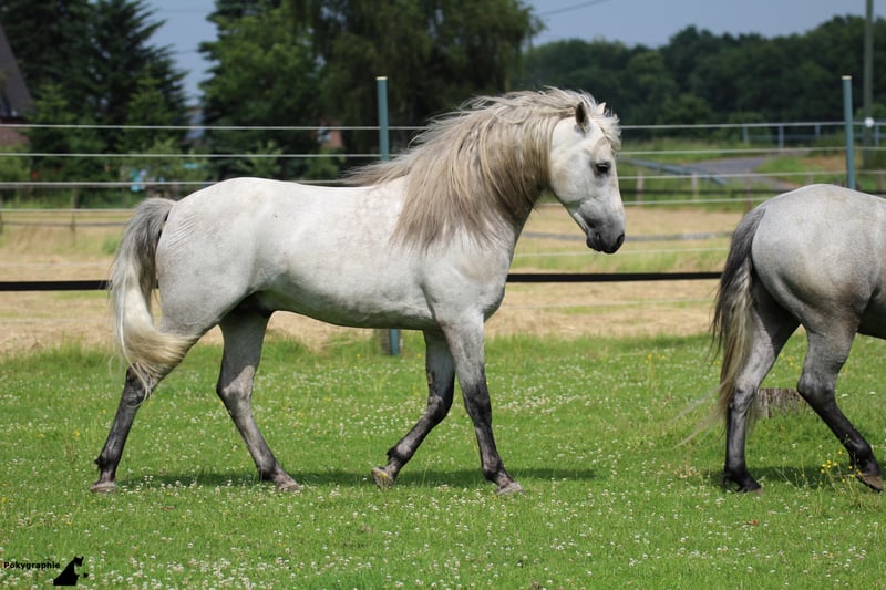 Miracle de crinière baroque Voyou est un gars très dominant qui se soumet néanmoins suffisamment à son partenaire de pâturage Geldach. Le plus sage a son repos. C'est un gars très travailleur engagé et souvent bruyamment communicant. Sa progéniture est équipée d'une crinière de meurtre, qu'il a héritée de sa mère via Tanpis du Mas. L'entraînement du cheval est incroyablement joyeux, car il réagit très concrètement et est sensible. Voyou est formé pour le tournoi jusqu'à Intermediaire, s'attaque aux obstacles de terrain tels que les obstacles de piste complètement impressionnés. Il travaille énergiquement dans le dressage à la fois dans les changements de vol et dans la piaffe. Lorsqu'il roule, il aime laisser sortir le tempo camarguetypique, mais doit être régulé à tout moment. Ce cheval est également travaillé sur le bétail. Nous préservons ainsi l'originalité de la race et testons non seulement leur volonté de plaire en tant que cheval de bataille, mais aussi leur convenance pour le bétail.