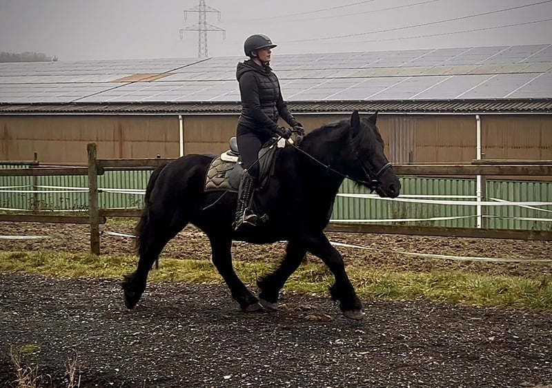 Name: Chilla Rasse: Kaltblut Mix Geschlecht: Stute Geburtsdatum: 24.04.2013 Alter: 12 Stockmaß: 1.50m Farbe: Rappe Abstammung: nicht bekannt Charakter: aufmerksam, neugierig, intelligent, mutig, geduldig, sensibel Ausbildung/Eignung: geritten, Freizeit, Geländepferd, Wanderreitpferd Geländeerfahrung: aufmerksam, zuverlässig, unerschrocken, alleine und in der Gruppe Gesundheit: entwurmt, geimpft, vorne beschlagen, ekzemfrei, Zähne kontrolliert, ostheopatisch behandelt Haltung: Box, Offenstall Besonderheiten: verladefromm, herdenverträglich Die genannten Eigenschaften beruhen auf unserer persönlichen Einschätzung und stellen keine zugesicherten Merkmale dar. Preis: 5500 (Bruttopreis) Haben wir ihr Interesse geweckt? Um Ihnen einen besseren Eindruck von Chilla zu geben, senden wir Ihnen sehr gerne Ihr Reitvideo zu. Selbstverständlich stehen wir Ihnen für eine ausführliche Beschreibung des Pferdes, persönliche Beratung und zur Beantwortung aller Ihrer Fragen auch telefonisch zur Verfügung. Bitte schreiben Sie uns hierfür jederzeit eine WhatsApp Nachricht, oder rufen unter folgender Telefonnummer an: +49 15119487595 Unsere Telefonzeiten sind täglich von 7:00 - 13:30 sowie ab 20:00Uhr. Wir freuen uns über Ihre Kontaktaufnahme! Eine klinische oder Röntgenologische Ankaufsuntersuchung kann gerne vom Tierarzt Ihrer Wahl durchgeführt werden. Natürlich kann Chilla sicher und komfortabel in ihr neues Zuhause geliefert werden. Wir kümmern uns um alle notwendigen Vorbereitungen und den Transport, damit Ihr neues Pferd stressfrei, gut betreut, versichert und wohlbehalten im neuen Zuhause ankommt. Zurzeit präsentieren wir eine sorgfältig ausgewählte Vielfalt an Verkaufspferden. Bei uns finden Sie garantiert Ihr Traumpferd. Besuchen Sie uns auch gerne auf unserer Homepage unter: www.marvinsroyalhorses.de. Sehr geehrte Kunden, gerne stellen wir Ihnen unsere Pferde vor und führen, putzen, satteln, longieren, Bodenarbeit sowie Probereiten in der Reithalle, auf dem Platz oder im Gelände ist Ihnen möglich, um Ihr neues Familienmitglied näher kennenzulernen. Dieses kostet für ein Pferd 40€, für jedes weitere 30€ und wird beim Kauf wieder erstattet. Unsere Adresse lautet: Grube Ferdinand 50 53577 Neustadt Wied Google Maps: marvinsroyalhorses