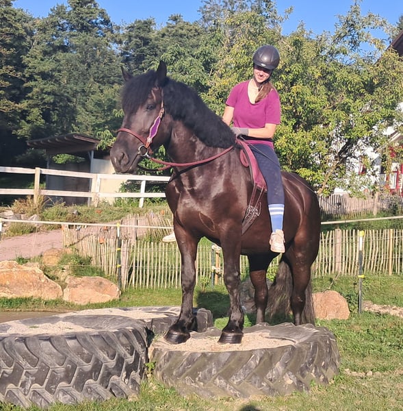 Inez – a Dream Horse! A truly gentle soul horse with a calm and friendly nature. Her serenity and composure help forget everyday stress and allow you to be fully present with the horse. She performs her tasks honestly and attentively, always eager to please and do everything correctly. A horse that brings happiness, is easy to ride, sits softly, and can be enchanted by her charm. Previously driven in pairs, she is 5.5 years old, 16.2 hh. Suitable for trail riding, outdoor adventures, leisure riding, therapy riding, and driving. Both English and Western riding are possible. Accustomed to open stable and herd life, stable confinement is no problem. Equine passport available. All our horses are familiar with groundwork, varied terrain, cars, agricultural machinery, as well as cows, donkeys, sheep, pigs, dogs, cats, and chickens. For more information and to arrange a viewing, please call 08536-2890292 (voicemail available) or 0157-78378455 (no mobile network at the farm). Please no private messages, emails, or WhatsApp inquiries! Sunday is our rest day. Accessories and transport can be arranged at favorable rates. Each customer is granted a contractual six-week exchange period. Prices are fixed. Requests for installment payments are not accepted. Customers who arrive with a trailer and take the horse immediately will receive a €100 discount. Upon purchase, a €1,000 cash deposit is due. If you wish to take the horse immediately, full payment is required. We offer a trial ride with two horses of your choice, so you can get to know your dream horse and see if it’s the right fit. Each appointment costs €35, whether riding, leading, preparing, or walking... each additional rider (friend, partner, sister, trainer) pays the same if riding along; just watching costs €20, as it still takes time. The fee will be refunded on the same day if you purchase the horse. Due to multiple incidents, we kindly ask for honest information regarding the rider’s weight. If false information is provided, we reserve the right to refuse a trial ride on-site. For the well-being of our horses, we do not want to exceed 120 kg. Since this is a living animal, these are only impressions from the caretaker and do not constitute guaranteed characteristics of the horse. Additional horses/ponies are available in my other listings or upon request.