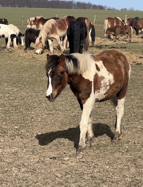 Name: Rainbow Rasse: Welsh B Mix Geschlecht: Hengst Farbe: Schecke Rainbow ist ein außergewöhnlich schick gezeichneter Jungponyhengst mit einem spannenden Mix aus Bewegung und Gelassenheit. Er wächst in der Herde auf und zeigt aktuell noch kein Hengstverhalten. - roh aber menschenbezogen - neugierig und lernwillig - herdenverträglich Dieser Mix bringt alles mit für Zucht (sehr interessante Kombination) oder nach dem Legen und Ausbildung ein absolut zuverlässiges Kinder- und Freizeitpony. Der Verkauf erfolgt aus Altersgründen im Rahmen einer Bestandsverkleinerung eines über viele Jahre aufgebauten Pferdebestandes. Es handelt sich ausdrücklich nicht um Notverkäufe.