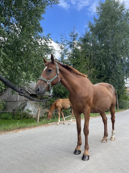 Zerówka is a 9-year-old mare of the Noble type breed. She has been ridden alone and with another horse in the countryside. She enjoys testing her limits and is very well-behaved, with children taking care of her. She would be perfect for children learning to ride. Currently, she is on a break following foaling.
