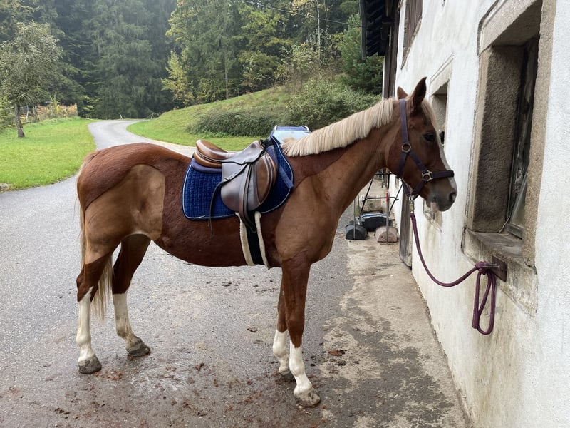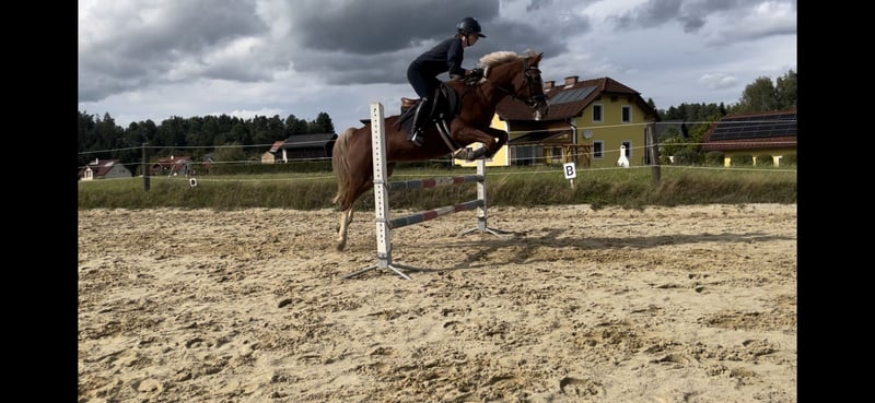 Zum Verkauf steht unsere 12- jährige ungarische Ponystute Bella. Sie ist 147cm groß und somit perfekt für Kinder geeignet, aber auch kleine Erwachsene deckt sie gut ab. Bella ist ein sportliches und leistungsbereites Freizeitpony. Sie geht sehr gerne ins Gelände und ist dabei unerschrocken und gelassen. Aber auch am Reitplatz möchte sie immer alles richtig machen. In der Dressur ist sie stets bemüht und ebenfalls absolvierte sie auch schon einen A- Parcours am Turnier. Bella kennt es aber auch longiert zu werden, von kleineren Kindern oder auch mal ohne Sattel geritten zu werden. schmiede- &verladefromm, beißt nicht, tritt nicht, geimpft Kennt Boxenhaltung mit tägl. Koppelgang aber auch Offenstallhaltung, sehr verträglich in der Herde, kopfklar, keine Unarten, hatte bereits Fohlen