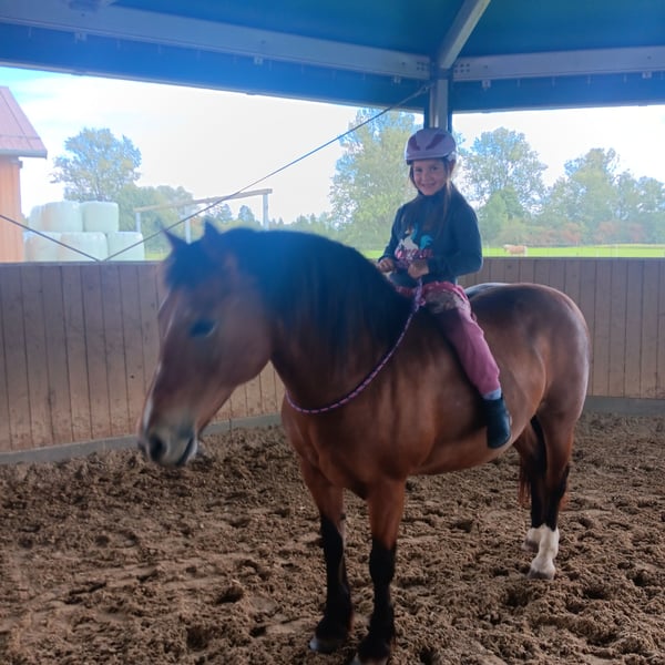 Ich suche ein liebevolles neues Zuhause für Siria. Sie ist 1,50 groß und kräftig gebaut, deckt Große Reiter ab. Siria geht am liebsten ins Gelände, hier ist sie sehr trittsicher und nicht schreckhaft. In der Reithalle läuft sie nicht so gerne, hier braucht es Durchsetzungsvermögen um sie auf den Hufschlag zu halten. Sie ist aber niemals böse. Für Kleinkinder ist sie nicht geeignet. Bei uns steht sie tagsüber in einer kleinen gemütlichen Herde und über nachts in der Box. Offenstall kennt sie auch. Bei uns war sie keinen Tag krank. Hat regelmäßig Physio und Hufschmied bekommen. Siria muss Fremde erst vertrauen lernen, dann macht sie alles für Einen. Sie kennt es gebisslos geritten zu werden und auch ohne Sattel. Gerne können wir einen Termin zur Besichtigung und Probereiten ausmachen. Hierbei nehmen wir uns Zeit und verlangen daher eine Gebühr von 45€, welche bei Kauf verrechnet wird. Es gibt eine Dressursattel und einen Deuber Barocksattel, der bei Bedarf dazu erworben werden kann.
