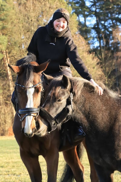 Ronja ist eine 3-jährige Ponystute, die mit ihrem ruhigen und liebevollen Wesen sofort begeistert. Sie ist eine absolut nette Seele: stets freundlich, nie bösartig oder wild und dabei sehr lernwillig und aufmerksam. Ronja ist bereits eingespannt, kennt Longe, Sattel und Trense und zeigt sich dabei immer brav und gelassen. Im täglichen Umgang ist sie ein echter Schatz: Sie lässt sich überall problemlos anfassen, gibt brav die Hufe, ist verladefromm und kennt den Hufschmied. Auch Tierarztbesuche meistert sie völlig entspannt. Zusätzlich geht Ronja ruhig und zuverlässig als Handpferd mit – ein toller Pluspunkt für Ausritte oder Training. Eine junge Stute mit einem großen Herzen, die sich sowohl für Freizeit als auch für weitere Ausbildung bestens eignet. Ronja sucht Menschen, die ihr weiterhin mit Ruhe, Liebe und Geduld begegnen und ihr die Welt zeigen möchten. 💫 Bei Interesse freuen wir uns sehr über eine liebevolle Anfrage. 💫