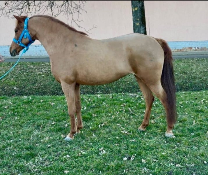 For sale is Bella, a wonderfully sweet 5-year-old pony mare. She has a height at withers of 126 cm. She has recently been clipped because she had such a dense coat, and since we do not have a solarium, she was already sweating quite a bit. :-) She is very gentle and easy to handle, and can be ridden, led, groomed, and cared for without any issues by children or teenagers. Bella is a very relaxed and calm type, not a hot pony! She has been ridden in all three basic gaits both in the arena and in the field for leisure riding, and has also been driven single and pair with excellent results. She also jumps a few small fences. She is healthy, barefoot, has a horse passport, is dewormed, and shows no signs of laminitis or sweet itch. She is familiar with both open stable and box stall and gets along well with others. Her brother (Bounty, a 6-year-old chestnut pony gelding) is also available for sale. We are happy to assist with transportation—either we can personally deliver if it’s not too far, or we can organize a transport company. Further information, photos, and videos are available upon request via WhatsApp.