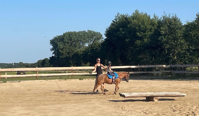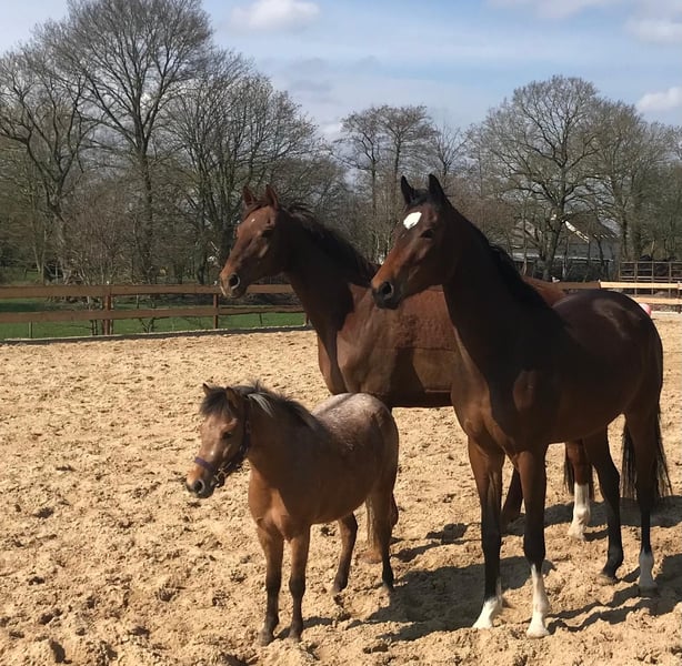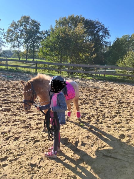 For Sale: Pony Mare Born in 2019 11.2 hh Welsh/Shetty cross Fee is a wonderfully sweet children's pony. She is very easy to handle and tolerant of most things. She has been ridden. Not suitable as a beginner's riding pony for independent riding, as she can be quite spirited when she wants to be. When tied up or in her box, she is very well-behaved, even for beginners. No bad habits! She lives on a farm and is very familiar with many things. Her teeth are up to date, and wolf teeth have been removed. Very good with the farrier. Has also been treated by an osteopath, just to be safe. In summer, she needs a blanket; otherwise, she might get rubs. She has served as a companion pony for various horses. We have already started her groundwork (double lunge + tire in the sand at the girth), and she was very well-behaved. Unfortunately, we haven't had more time to continue.