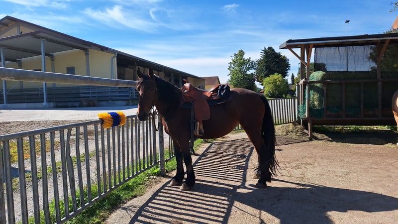 Lieber Pferdemensch, ich suche Dich als Partner in unserem Team mit Leni, meiner 6jährigen Friesen-Mix-Stute,. Leni wird freizeitmäßig geritten, hat einen lieben Charakter, braucht aber altersentsprechend jemanden mit Jungpferdeerfahrung und ist derzeit nicht anfängergeeignet. Sie ist neugierig, mag Ausritte und arbeitet auch auf dem Platz aufmerksam mit. Leni steht in einem Offenstall mit 6 weiteren Pferden. Die Herde (und die Stallgemeinschaft) ist sehr harmonisch. Wir haben einen kleinen Reitplatz (20 x 20 m), eine Reitwiese/Trail bei trockenem Boden und ein wunderschönes Ausreitgelände. Ich wünsche mir eine zuverlässige und verantwortungsbewusste RB mit Herz und Pferdeverstand, vorzugsweise Jungpferdeerfahrung, ohne Turnierambitionen. Einfach jemanden, der mit uns ein Team werden möchte und dem, wie mir, das Wohl von Leni an erster Stelle steht. Wenn möglich 2x wöchentlich. Für weitere Fragen bitte gerne melden. Liebe Grüße Tanja