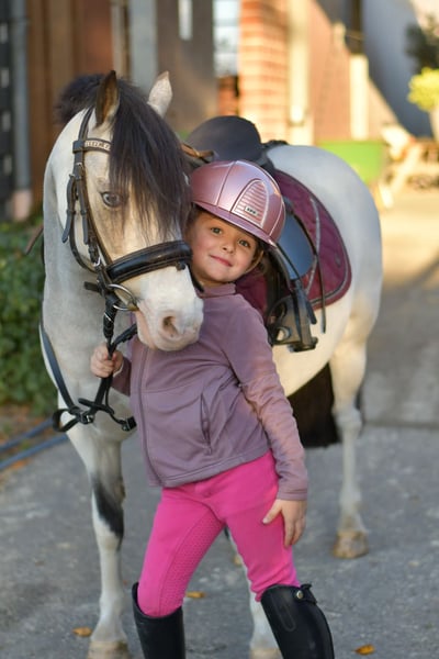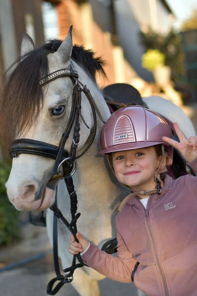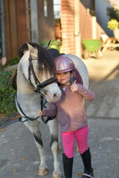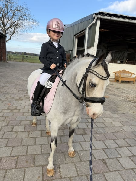 Rosie – the Perfect Child’s Confidence Pony Are you looking for a loyal companion for your child? Rosie is exactly the pony you need! This wonderful confidence pony is not only well-behaved and easy to handle but also a true star at competitions. **Highlights of Rosie:** - **Experience:** She completes all beginner dressage tests flawlessly and has achieved numerous wins in dressage and jumping up to E level. - **Suitability:** Perfect for young riders taking their first jumps and also a real hit in lead-rein classes. - **Health:** Rosie is in excellent health, with no prior illnesses, and is safe around fences. - **Temperament:** She is very easy-going and gets along well with other horses, even larger ones. **Special Offer:** Immediate purchase comes with a 5% discount on the asking price! **Test Ride:** We offer you the opportunity to test Rosie with us for one week, accompanied by experienced trainers. This trial week can be combined with riding lessons. Please note that a trial fee applies, which is not deducted from the purchase price. **Pre-Ride Viewing:** You are welcome to come and see Rosie. The cost for a pre-ride or trial ride is €30 per person. We only place Rosie in the best hands – if everything fits, my daughter would love to continue riding her. Do not hesitate to contact us! **Rosie – a pony that wins hearts!**