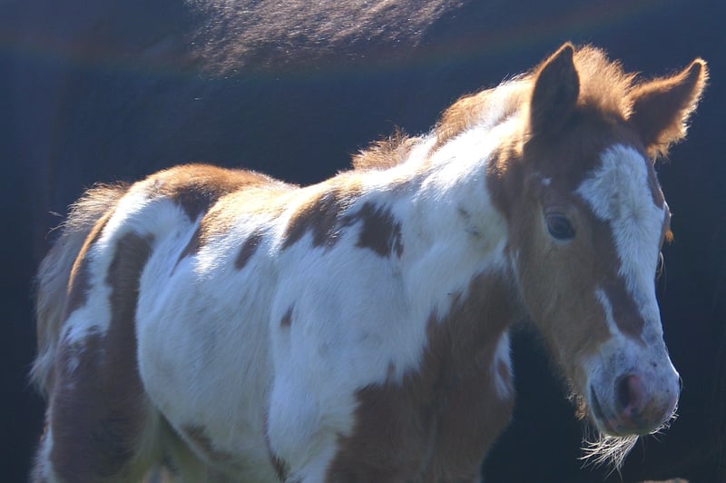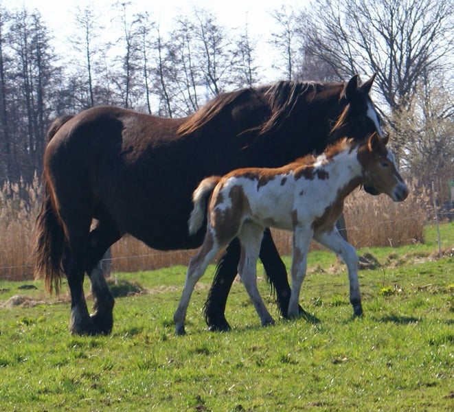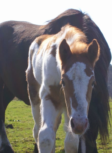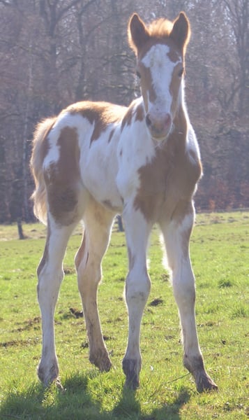 Fuchsschecke mit bernsteinfarbigen Augen, Vater ist ein Painthengst 150 cm, die Mutter eine kräftige Tinkerstute 150 cm, wüchsiges kräftiges Fohlen, aufgeweckt und neugierig, wächst im Herdenverband mit anderen Fohlen zusammen auf, regelmäßig entwurmt, es gibt bereits Nachkommen aus dieser Anpaarung welche besichtigt werden können, es ist immer ein gelungener Mix