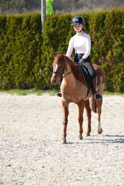 "Freddy," a 12-year-old gelding. Friendly and well-behaved, ideal for lead-rein and riding competitions. Also suitable for cavaletti lessons. A wonderful pony for children.