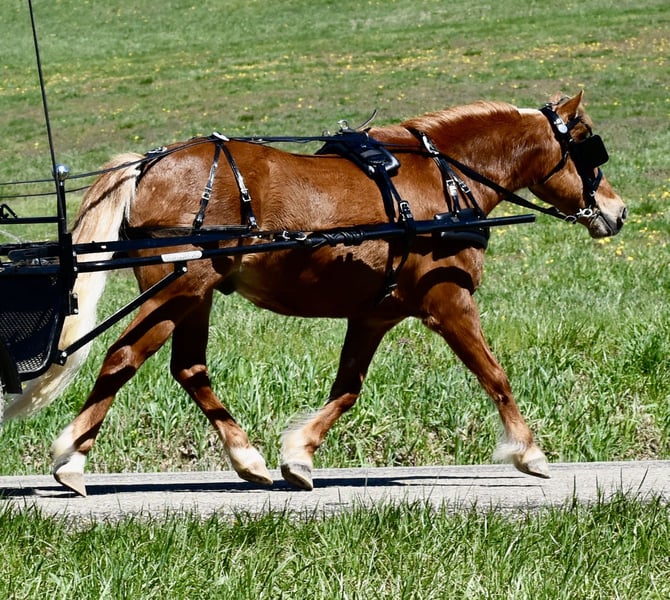 ⚜️𝐭𝐡𝐞 𝓔𝓵𝓲𝓽𝓮 𝐒𝐩𝐫𝐢𝐧𝐠 𝐂𝐥𝐚𝐬𝐬𝐢𝐜⚜️ Happening now thru MONDAY | APRIL 20th - Available EXCLUSIVELY on HorseBid's website! For more details and to register visit: www.Horsebid.com CONSIGNOR CONTACT: Twilight Farms / Kristin Mulhall 740-552-9538 LOCATION: Fresno, OH BREED: Pony REGISTERED: No REGISTERED NAME: Oliver COLOR: Chestnut HEIGHT: 11 AGE: 10 GENDER: Gelding Oliver is truly a once-in-a-lifetime pony. This 10-year-old, 44” (11 hand) chestnut gelding with a long, flowing mane and tail is the kind every family dreams about—and very few ever find. He is the pony that kids fight over to ride, the one they line up for, patiently waiting their turn because they know just how special he is. Oliver has safely taught multiple children how to ride and has a rare, natural ability to build confidence in even the most timid riders. He is gentle, patient, and forgiving, yet still fun and capable enough to grow with a child as they advance. What truly sets Oliver apart is his versatility and build. He is small and kind enough for the tiniest kids to safely enjoy, yet stout and strong enough to carry bigger kids and even go out with Dad to check cattle or rope. He is the definition of a “been there, done that” pony—the kind you can trust in any situation without a second thought. Around the farm and in the arena, there is truly nothing that phases him. The kids have stood on him, played games like tetherball, carried flags, tarps, and dragged jugs—he takes it all in stride without hesitation. He thrives in busy, chaotic environments and remains calm, steady, and reliable no matter what is going on around him. Under saddle, Oliver is well broke both English and Western. He carries himself in a natural, correct headset, has a soft mouth, and is responsive to cues without being overly sensitive. He walks, jogs/trots, and lopes/canters willingly, picks up his leads, and can be ridden with or without spurs. He is just as dependable in the arena as he is outside of it, making him a true all-around partner. Beyond riding, Oliver is also exceptionally well broke to drive. He is 100% traffic safe and has been driven extensively on busy roads, including large state routes with semis passing him head-on. He handles it all with complete confidence and composure. We trust him to be driven by the smallest of kids in traffic, yet he is strong enough to comfortably pull multiple adults as well. This is the kind of pony that is incredibly hard to find. Families will spend years searching and countless miles on the road trying to find one this safe, this broke, this versatile, and this fun for everyone to enjoy. Oliver truly does it all—and does it with a kind, willing attitude that makes him unforgettable. We stand behind Oliver and guarantee him in every way. Be sure to watch his full video to truly appreciate just how safe, steady, and special he is. Don’t miss your chance to own a pony like this—because there simply aren’t many like him.