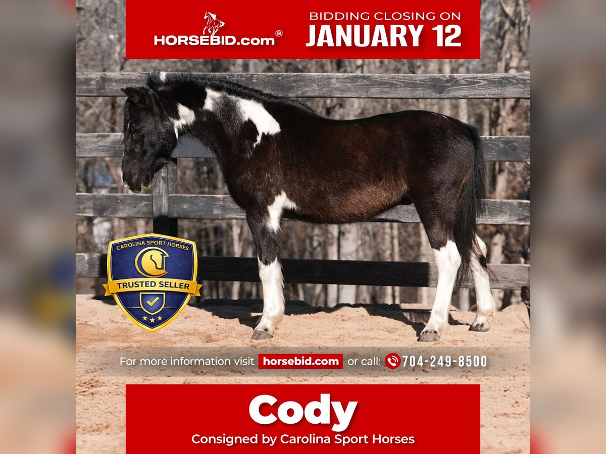 ♦️𝐍𝐄𝐖 𝐘𝐄𝐀𝐑'𝐒 𝑬𝒙𝒕𝒓𝒂𝒗𝒂𝒈𝒂𝒏𝒛𝒂♦️ Happening now thru MONDAY | JANUARY 12th - Available EXCLUSIVELY on HorseBid's website! For more details and to register visit: www.Horsebid.com CONSIGNOR CONTACT: Carolina Sport Horses 704-249-8500 LOCATION: Clover, SC BREED: Pony REGISTERED: No REGISTERED NAME: Cody COLOR: Black White Paint HEIGHT: 11 AGE: 10 GENDER: Gelding Cody is the kind of pony every family hopes to find — safe, steady, and genuinely happy taking care of his rider. He is quiet and confidence-giving under saddle, making him an excellent choice for children and families looking for a trustworthy, uncomplicated partner. Cody has a patient nature and offers the type of ride that allows kids to relax, learn, and enjoy their time in the saddle. One of Cody’s best qualities is his personality. He truly loves kids and attention and thrives in a family environment where he can be doted on and included. He is affectionate, kind, and enjoys being groomed, handled, and loved on, making him a barn favorite. Cody is easy to handle on the ground with excellent manners and is simple to tack, groom, and manage. He is well suited for arena riding, light trails, lessons, and all-around family enjoyment. Proudly offered by Carolina Sport Horses, Cody represents the quality, honesty, and emphasis on safety our program is known for. He is the type of pony we confidently place with families seeking a dependable, loving, and confidence-building partner. *All of our descriptions are OUR OPINION and ARE NOT FACTS. They represent how the horse responded and behaved while in our care. Horses can change at any time as they are living, breathing animals. There are no warranties expressed or implied via the descriptions above*PLEASE READ OUR BUYERS GUIDE PRIOR TO BUYING OR BIDDING ON ANY HORSE WE HAVE AVAILABLE. Interested in bringing Xerox home? Give us a call today! Please take the time to read our Buyers Guide to answer any questions or concerns you may have. Contact Us Call or TEXT 704.249.8500