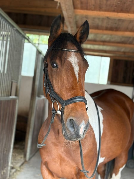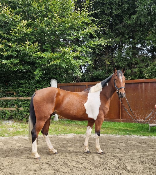 À vendre, un magnifique hongre irlandais de 10 ans mesurant 155 cm au garrot. Ce joli pie au look élégant ne séduit pas seulement par son apparence, mais aussi par son caractère doux et sa force de caractère. Il est bien monté en extérieur, que ce soit seul ou en groupe, connaît les balades à la plage et les randonnées, tout en restant toujours calme et fiable. Intrépide et attentif, il s'efforce toujours de plaire à son cavalier – un véritable cheval de cœur ! 💖 Il connaît également le travail à pied, bien que cela soit encore nouveau pour lui – il se montre toujours désireux d'apprendre et motivé. C'est un cheval à 4 allures et à l'allure de pas, ce qui le rend particulièrement confortable à monter. Le galop est également contrôlable en extérieur. En bonne santé, sans vices, pieds nus, et habitué aussi bien à la vie en stabulation libre qu'en box. Un partenaire de loisirs exceptionnel pour tous ceux qui recherchent un cheval fidèle, simple et polyvalent. 💚 Une visite peut être organisée à tout moment sur rendez-vous et un transport peut être facilement organisé ! Sur demande, son équipement peut également être acquis moyennant un supplément !