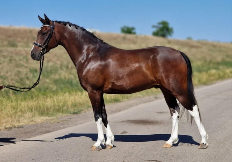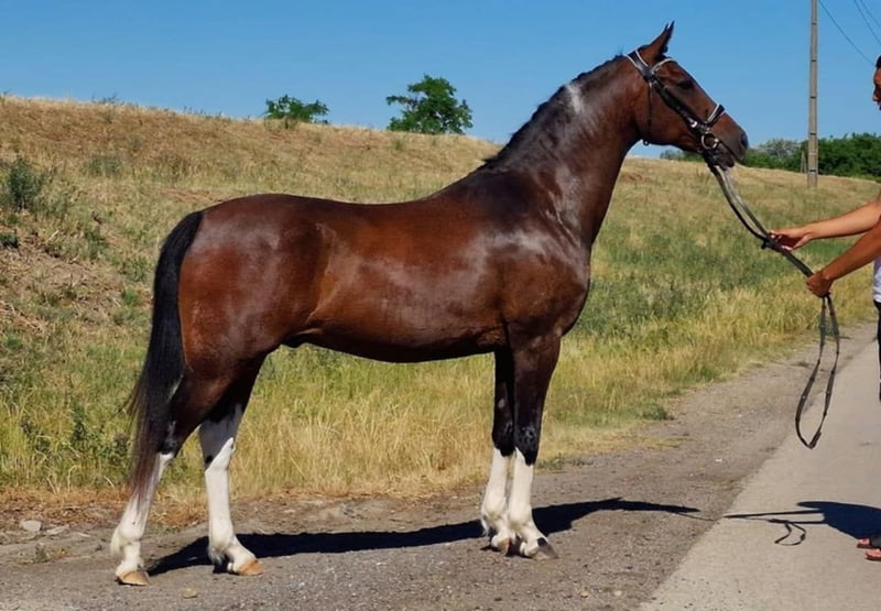✨🦇 Bakardi 🦇✨ 🦇 Age: 5 years 🦇 Gender: Gelding 🦇 Height: approximately 15.5 hh (155 cm) 🦇 Suitable for: Show jumping, leisure riding, beginners, children 🐴 Bakardi is an absolutely reliable partner who impresses both in daily handling and under saddle with his calm, balanced nature. He is consistently friendly, affectionate, and particularly good with children – making him ideal for young riders or beginners who need security and confidence. 💛 💨 When jumping, he is motivated, brave, and pleasant to ride. He does not hold mistakes against the rider and remains always controllable. Perfect for small competitions, riding schools, or as a safe leisure partner. ✨ His character is truly valuable: • Extremely well-behaved ✔️ • Well-mannered ✔️ • Easy to handle ✔️ • Nerve-proof ✔️ 🌿 Whether in the arena, on the trail, or in the paddock – Bakardi handles everything effortlessly and ensures a positive riding experience for young and old alike. 🔥 An ideal family and children’s gelding that is ready to go immediately. +49 176 4017 7894
