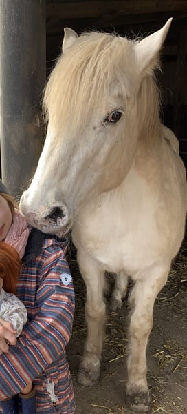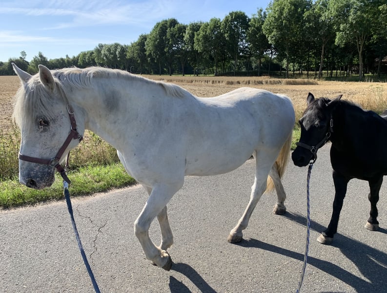 Verkaufe meinen charmanten Schimmel-Wallach, geb. 2012, mit einem Stockmaß von circa 150 cm. Dieses freundliche Kleinpferd eignet sich hervorragend für die Freizeitgestaltung und ist ideal für Reiter, die ein zuverlässiges und angenehmes Pferd suchen. „Fredi“ ist stets gesund und hat ein angenehmes, beruhigendes Wesen. Er liebt es, mit Mensch und Hund oder auch den Weidekumpels durch Wald und Wiesen zu spazieren, genießt es merklich und strahlt eine ungeheure Ruhe aus - gerade auch auf Kinder! Er kennt jegliche Form von Landwirtschaftsgeräten und Fahrzeugen, wobei eine Mülltonne schon mal unheimlich sein kann ;-) Als rangniedriger Genosse ist er sehr entspannt mit allem, was um ihn herum passiert. Aktuell ist er eine Weile nicht bewegt worden und stand mit seinen Stuten 24/7 im Offenstall/Weide, sodass er ein wenig bequem geworden ist. Gern können wir einen Kennenlerntermin vereinbaren, er freut sich bestimmt, wenn sich jemand findet, der mehr Zeit für ihn hat, als ich..