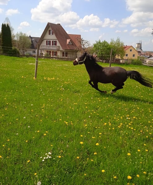Wir suchen für unseren lieben Wallach ein neues, passendes Zuhause, da unsere Tochter leider kein Interesse mehr am Reitsport zeigt. Er ist ein holländisches Pony, 17 Jahre alt und hat ein Stockmaß von 1,37 m. Über ihn: Wallach, 17 Jahre Stockmaß: 1,37 m Barhuf, brav beim Hufschmied Komplett geimpft & regelmäßig entwurmt Offenstall- und Boxenhaltung gewohnt Ausbildung & Einsatzmöglichkeiten: Brav in der Halle und auf dem Platz – auch mit Kindern problemlos reitbar Kennt Freispringen und kleine Sprünge mit Reiter Geländeerfahren mit einem souveränen zweiten Pferd oder einem erfahrenen Reiter An der Longe auch mit Anfängern sicher zu reiten Verladen problemlos – regelmäßig Hänger gefahren (mit breiter Trennwand) ‼️ Hinweis: Kein Gewichtsträger! Er ist ein zuverlässiger Partner für Kinder mit Reiterfahrung und bietet viel Freude bei der Bodenarbeit, beim Reiten und im Umgang. Wir wünschen uns für ihn ein liebevolles neues Zuhause mit pferdegerechter Haltung und Beschäftigung. Videos können gerne auf Anfrage gesendet werden. Zubehör: Passendes Zubehör wie Sattel, Trense und Winterdecke kann gegen Aufpreis mit übernommen werden. ❤️ Wichtig: Platz vor Preis! Uns ist es besonders wichtig, dass er in gute, pferdegerechte Hände kommt.