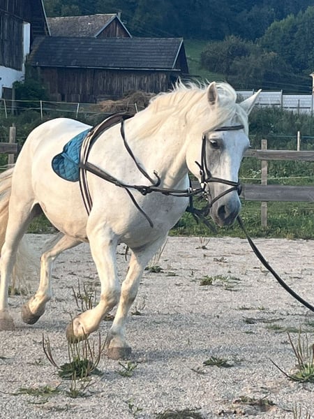 Schweren Herzens habe ich mich dazu entschieden, meinen 16 Jahre alten Haflo-Araber (75 % Haflinger, 25 % Araber) abzugeben, da ich ihn leider nicht mehr gerecht werden kann. Er ist ein charakterstarkes Kleinpferd (148cm) sehr lernwillig und fein unter dem Sattel und zeigt besonders viel Freude beim Springen und in der Dressur. Er eignet sich optimal für Freizeitreiter, die auch gerne am Reitplatz arbeiten. Ich habe mit ihm den Reiterpass und die Reiternadel absolviert. Auch im Schulbetrieb kann ich ihn mir sehr gut vorstellen. Rassetypisch kann er manchmal seinen Hafisturkopf einsetzen, aber ansonsten ist er ein wirklich braves Schimmelchen. In den letzten 10 Jahren war er immer kerngesund und robust Schmiede- und Verladefrom Er steht aktuell im Offenstall, aber Boxenhaltung kennt er ebenfalls Standort: Völkermarkt (Kärnten) Probereiten nach Vereinbarung gerne möglich