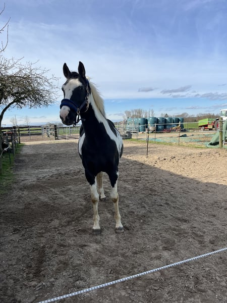 Wir verkaufen unseren 18 Jährigen Wallach. Da er rangniedrig ist steht er in einer Box, im Sommer aber immer mit zwei anderen Pferden auf der Wiese. Wir hatten ihn zuerst im Offenstall stehen, da wurde er aber von den anderen Pferden gemobbt. Er wehrt sich nicht und lässt alles mit sich machen. Beim Putzen und beim Hufschmied ist er brav. Meistens geht er auch bei dem zweiten Versuch auf den Hänger. Die Pferdewaage kennt er auch. Man kann ihn auch super als Handpferd nehmen. Halle und Platz kennt er, Gelände geht er nur mit anderen. Er ist kein Anfänger Pferd und braucht einen Reiter der ihm Sicherheit gibt. Zu Beginn testet er besonders im Gallopp die reiterlichen Fähigkeiten aus. Man kann mit ihm Boden/ bzw. Stangenarbeit machen, longieren, springen und Dressur reiten. Das reiten mit Pad oder ohne Sattel ist er auch gewöhnt. Wir haben auch schon vermehrt an working equitation Lehrgängen teilgenommen.