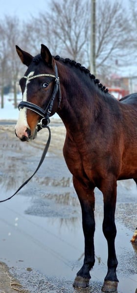 For sale is a stunning pony gelding with a dark bay coat and a striking blue eye! Rolex is 4 years old and stands at 14.1 hh. He has been ridden in leisure riding both on the flat and in the terrain, and is also driven single and pair harness. He has a very calm and gentle temperament, making him an excellent choice for beginners. A lovely leisure pony to enjoy and have fun with. He willingly gives all four hooves and stands quietly during grooming. Viewings are welcome at any time. Additional information, photos, and videos are available upon request via WhatsApp. We can assist with transportation – either we can personally deliver if it’s not too far, or we can arrange an affordable transport through a shipping company.