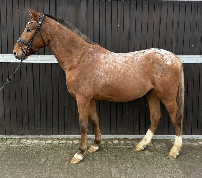 Super schicker fast 4 jähriger Wallach in begehrter Sonderlackierung sucht passenden Partner! Er deckt mit seiner Größe von 149cm super ab und ist auch für größere Reiter geeignet. (Reiterin 173cm) Lucky ist seit Anfang des Jahres angeritten und zeigt sich sehr gelehrig und artig unter dem Sattel. Auch im täglichen handling ist er sehr unkompliziert und ehrlich. Er macht seinen Job sehr gut und gibt einem jetzt schon ein sehr gutes Reitgefühl mit. Natürlich muss er noch weiter ausgebildet werden, die Grundsteine sind aber schon gelegt. Ich könnte ihn mir auch gut als Vielseitigkeitspferd vorstellen. Lucky hat ein angenehmes Gemüt und ist sehr kopfklar. Dennoch ist er kein Anfängerpferd! Jedoch für ambitionierte Reiter absolut geeignet. Videos und weitere Infos auf Anfrage. Abstammung ist Lando (Loverboy) x Camax L (Lewitzer x Westfale) Lucky hat sehr gute GGA und ist durchaus auch für den Sport denkbar!