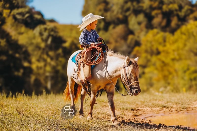 ⚜️𝐓𝐇𝐄 𝐅𝐀𝐋𝐋 𝐇𝐄𝐑𝐈𝐓𝐀𝐆𝐄 𝐂𝐋𝐀𝐒𝐒𝐈𝐂⚜️ Happening now thru MONDAY | NOVEMBER 3rd - Available EXCLUSIVELY on HorseBid's website! For more details and to register visit: www.Horsebid.com CONSIGNOR CONTACT: Rockin’ W Ponies & Double R Ranch 931-623-1706 LOCATION: Lyles, TN BREED: Miniature Horse REGISTERED: Yes REGISTERED NAME: AMW’s Mischief Maker COLOR: Dun HEIGHT: 40” AGE: 4 GENDER: Gelding Meet “Porkchop” The one, the only!! Registered Miniature Horse “AMW’s Mischief Maker” You may have already seen him creating smiles all over social media- Porkchop and his tiny riders have a way of stealing hearts wherever they go- and they have gone viral online more than a few times!! This cute little guy is full of personality, a true favorite everywhere we take him. He’s the kind of pony kids dream about, and parents value so much. Porkchop is solid, sturdy, and has a thick little build, he looks like a tiny Quarter Horse! He is made to last your cowboy or cowgirl through years of fun. At 4 years old and standing 40” tall- he’s got his whole life ahead of him, and he’s just the right size for a growing cowboy or cowgirl. Wade is 9 years old, and he has ridden Porkchop everywhere, as well as Cooper who is only 2- who requires an extra bit of patience while he tries to get it all right and ride like a big boy. Porkchop has been everywhere with us. Even in our house!! Being ponied behind daddy’s horse, down the trails, through the woods and fields, splashing in the creek, out to check deer food plots and to check cows too. He tags along to horse shows and jackpots, and even has won ribbons at the saddle club being the perfect little leadline pony, in barrels, poles and walk-trot. Porkchop is patient, forgiving, and always willing to try whatever the kids dream up. He may have little legs, but he keeps up well! From patient beginner lessons, to silly cowboy games, chasing “outlaws,” or just plodding quietly down the road, Porkchop takes it all in stride. He doesn’t get worked up by noise, dogs, or other animals, and he’s happy to pack around beginners, even if they’re still learning how to balance, steer, or get their tack on straight. He is a little steady Eddie - and gives kids the kind of safe, confidence-building rides that shape them into horsemen. To find all of this in a pony who is only four years old, is quite unheard of! He is a rare old soul, and worth every penny he brings. He has been trail ridden extensively, independently- is traffic safe, crosses water, logs, and ditches, and handles hills and rough country with ease. Porkchop may be pony-sized, but he has the heart of a big horse. He has been all over Buffalo River Trail ride, overnight camping as well. He is reliable, quiet and always ready for the next adventure! This little guy has even starred in a kids movie- as one of the bandits ponies! (Check it out on YouTube, on our Double R Ranch Horses channel) Unicorn ponies like Porkchop don’t come around often. He’s such a sweet little babysitter type who can’t wait to be will be loved and cherished by his next family. If you’ve been searching for a pony you can trust to help build the next generation of cowboys and cowgirls, Porkchop is the one. 100% sound, with a clean bill of health/recent Veterinary pre purchase exam! Located in Lyles, TN. Contact Rachel Vick at 931-623-1706 if you’d like to know more about Porkchop the Pony and see if he’s the right match for your cowboy or cowgirl!