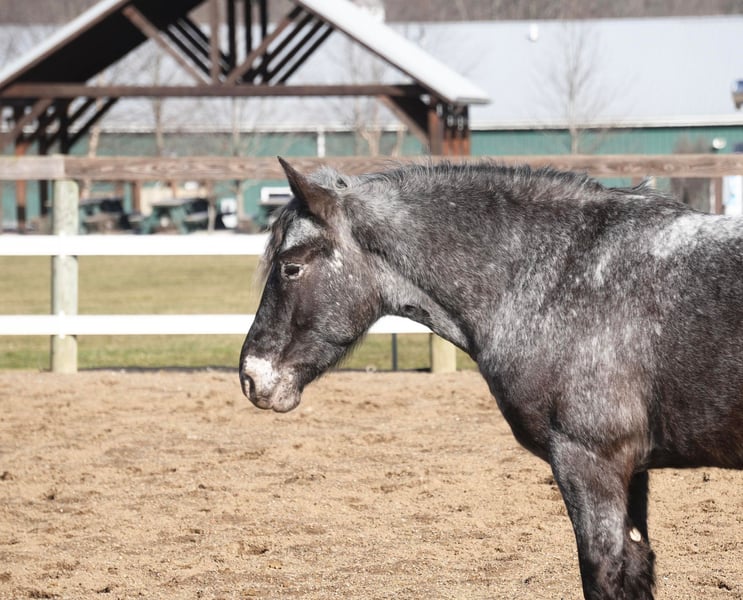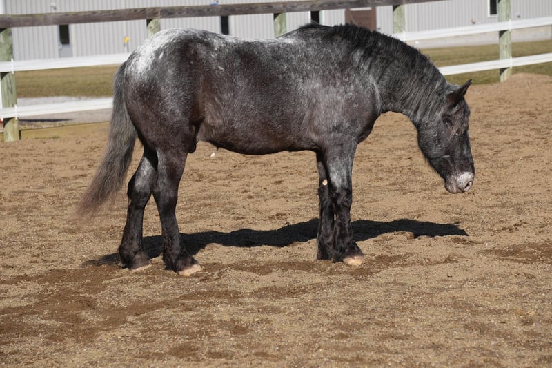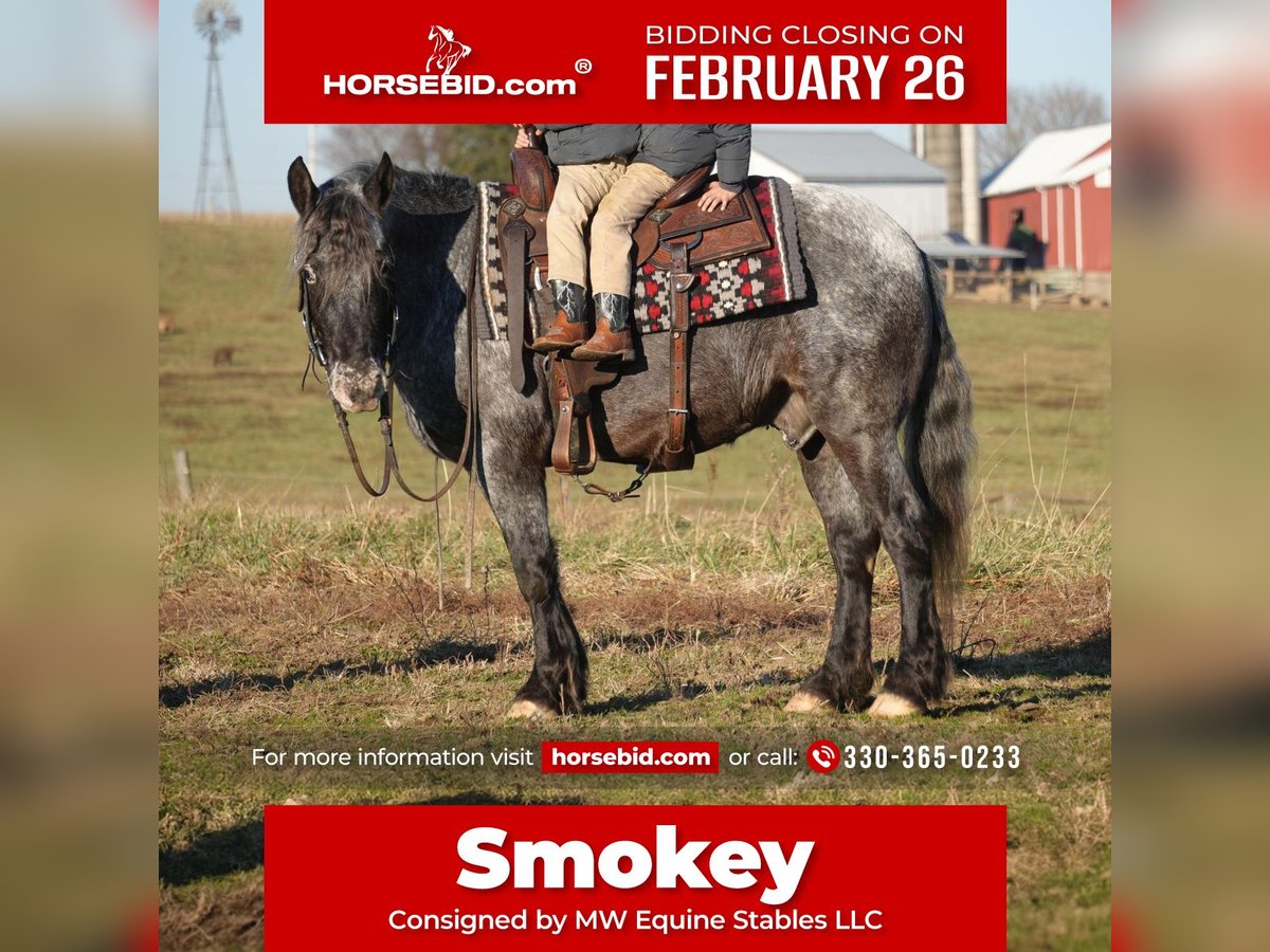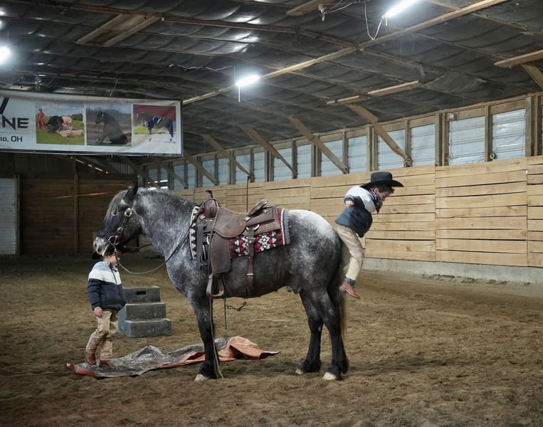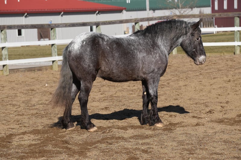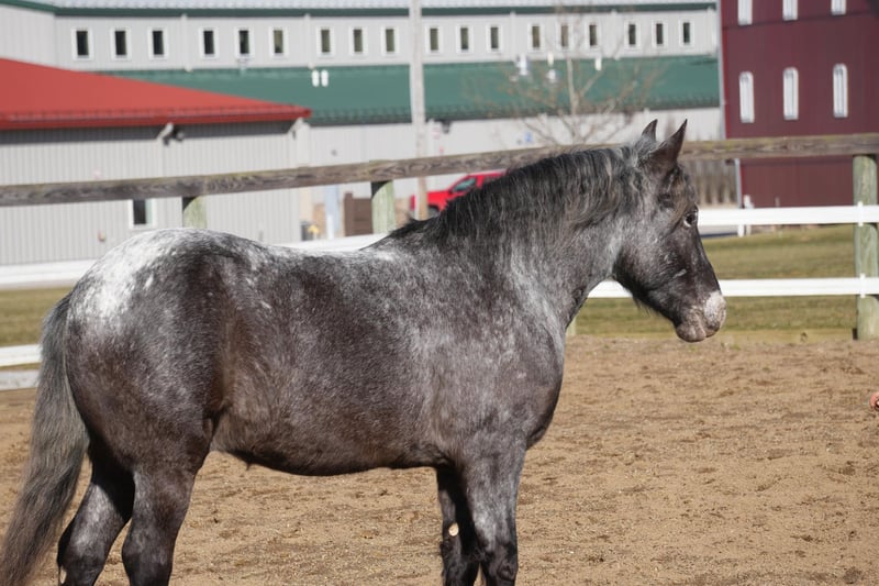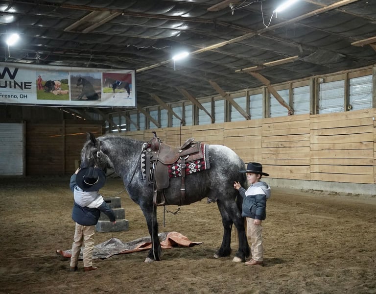 THE Diamond SHOWCASE ♦ Happening now thru MONDAY | FEBRUARY 26th - Available EXCLUSIVELY on HorseBid's website! For more details and to register visit: www.HorseBid.com CONSIGNOR CONTACT: MW Equine Stables LLC 330-365-0233 LOCATION: Fresno, OH BREED: Draft Cross Pony REGISTERED: No COLOR: Blue Roan Appaloosa HEIGHT: 14 AGE: 4 GENDER: Gelding Smokey “The little cuddly teddy bear He is the cutest little 4 yr draft x pony you will ever lay your eyes on. He is Blue roan Appaloosa gelding, standing 14 hands tall. This guy is the total babysitter that every family needs. He is trained the absolute best. He does have that friendly, in your pocket personality. He loves to play with kids. Very safe and dependable. More whoa then go ⭐️ he has been on tons of trail rides. Rides great alone or with others, he will never get excited while riding with a group. Smokey is the pony that you can trust with the grandkids, whether you ride him once week or once a year. He will stay the same. He loves to follow you wherever you go and is always the first one to meet you at the gate. He is tarp safe and takes the obstacles with ease. Is great with cattle,Crosses logs creeks , etc. he is 100% sound and has three comfy gaits. Walk, trot, and canter. Loads like a champ and stands great for farrier and bathing. He is UTD on coggins,teeth, trims. Located in Fresno, Ohio Contact Marcus@ 330-365-0233