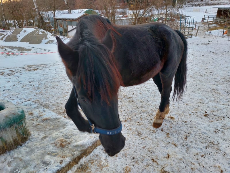 Verkaufe aus gesundheitlichen Gründen meinerseits, freundlichen Rapp-Wallach, geb. 2000, mit einem Stockmaß von 150 cm. Dieses charmante Pony/Kleinpferd ist ideal für Freizeitaktivitäten und begeistert durch sein ruhiges Wesen sowie seine angenehme Rittigkeit. Der Wallach ist gut ausgebildet und lässt sich sowohl von erfahrenen Reitern als auch von Einsteigern sicher und zuverlässig reiten. Seine freundliche Art macht ihn zu einem treuen Begleiter für die ganze Familie. Ein vielseitiges Freizeitpony, das durch sein angenehmes Temperament und seine robuste Konstitution überzeugt. Bei Interesse freue ich mich auf Ihre Kontaktaufnahme.