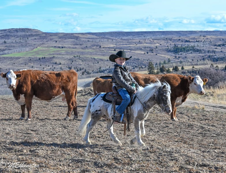 🎁 𝐈𝐍 𝐓𝐈𝐌𝐄 𝐅𝐎𝐑 𝑪𝒉𝒓𝒊𝒔𝒕𝒎𝒂𝒔 🎁 Happening now thru TUESDAY | DECEMBER 9th - Available EXCLUSIVELY on Ponybid's website! For more details and to register visit: www.Ponybid.com CONSIGNOR CONTACT: 4 Spades Ranch 208-705-6540 LOCATION: Rigby, ID BREED: Pony REGISTERED: No COLOR: Appaloosa HEIGHT: 36" AGE: 6 GENDER: Gelding Wait till you see this pony in person he’s a true looker. Aussie doesn’t just turn heads; he turns work into fun. He’s the whole package: good-minded, confident, and a genuine pleasure to ride, standing 36 inches tall and only 6 years old. Aussie is as cute as a button and handier than the pocket on your shirt. He's got one blue and one brown eye and all speckled up. He's a little Aussie puppy in a ponies body! This pony carries himself with the kind of confidence you can feel from the saddle. He’s safe, steady, and knows his job. Aussie has been used for daily ranch work, pushing cattle, trail riding, and even roping the sled. He’s been around all the commotion rodeos, kids, dogs, and chaos and takes it all in stride. He’s crosses water, carries the flag, goes over teeter-totter, and even lays down like a dog. You can shoot a BB gun off him, tie him to the trailer, or let the kids crawl all over him nothing rattles this pony. Not to mention he has the sweetest little lope too. Our boys ask a lot out of there ponies. And good ponies come from even better hands. If you’re looking for a solid, broke, and good-looking pony that’s always a top hand for his rider, Aussie is your guy.