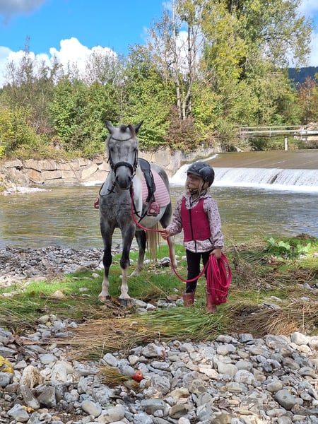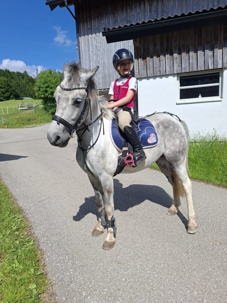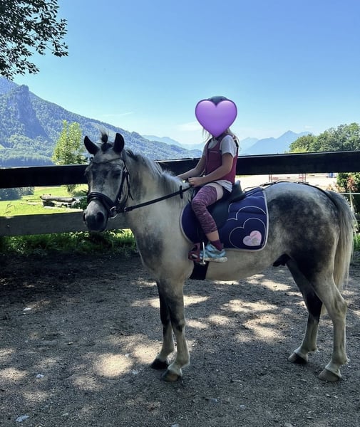 Robby ist ein zuckersüßes 2018 geborenes Grauchscheckpony. Der kleine Mann ist 130 cm groß und kräftig gebaut. Robby liebt das Putzen und verwöhnt werden. Er ist sowohl am Putzplatz als auch bei der Bodenarbeit vorbildlich brav. Beim reiten überrascht Robby mit seiner Motivation und seinem Mut. Besonders gefällt ich das Ausreiten, dabei liebt er das Wasser und besonders Spaß hat er beim Springen. Dieser kleine Wallach ist das perfekte Kinder- und Familienpferd! Auch als Therapiepferd können wir uns den Schecken gut vorstellen. Robby ist aktuell geimpft und entwurmt!# Weitere Infos und Videos gerne per WhatsApp oder telefonisch unter: 00436603632373 Standort: Pelmberg 15/ OÖ Besichtigung und Probereiten gerne nach Terminvereinbarung! Der Transport des Pferdes kann gerne übernommen werden