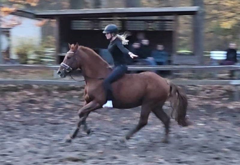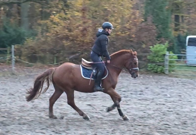 Timmy ist ein ausgesprochen sympathischer Kleinpferd-Wallach, der mit seinem hübschen Äußeren sofort ins Auge fällt. Besonders seine großen, sanften Augen und sein freundliches Wesen machen ihn zu einem echten Herzenspferd. Er lässt sich sowohl von Kindern als auch von Erwachsenen problemlos reiten und händeln. Mit seinem passenden Format deckt er Reiter unterschiedlichster Größe gut ab. Selbst größere Reiter. Timmy überzeugt mit ordentlichen Bewegungen, ist sehr leichtrittig und leicht an den Zügel zu stellen. Er macht ein tolles Bild unter dem Reiter. Auch im Springen sammelt Timmy bereits erste Erfahrungen und hat schon zweimal erfolgreich an einer Springstunde teilgenommen. Hierbei beweist er viel Freude und Lernbereitschaft. Bei weiterer Förderung sicher auch für kleinere Turniere geeignet. Ich denke er kommt bei den Richtern gut an. Besonders im Gelände geht Timmy mit viel Zuverlässigkeit und Freude – unerschrocken, angenehm und immer entspannt. Dank seines tollen Charakters und seiner Gelassenheit eignet er sich auch hervorragend für weniger erfahrene Reiter und wäre zudem ein ideales Therapiepferd. Im täglichen Umgang ist Timmy ein wahrer Schatz: verschmust, menschenbezogen und verträglich mit anderen Pferden. Er kennt Boxenhaltung mit Paddock genauso wie Offenstall und passt sich unkompliziert an. Ein Pferd, das durch seine Ausstrahlung und seine liebenswerte Art sofort begeistert und zum treuen Partner für die ganze Familie wird. 7j W. , 1.54 m Klinische Aku vorhanden Noch mehr Fotos, Videos und kleine Einblicke in den Alltag unserer Pferde gibt’s auf Instagram: [maresi_lange]. Schauen Sie gern vorbei und lernen Sie unsere Vierbeiner schon vorab ein bisschen kennen. You can find more photos, videos and little insights into the everyday life of our horses on Instagram: [maresi_lange]. Feel free to take a look and get to know our horses a bit better in advance.“ Die Beschreibung des Pferdes beruht auf subjektiven Eindrücken und Erfahrungen unsererseits und ist keine Beschaffenheitsvereinbarung und Zusicherung von Eigenschaften. Probereiten erfolgt auf eigene Gefahr. Verkauf erfolgt im Auftrag. Für das Vorstellen/ Probereiten des Pferdes erlauben wir uns eine Aufwandsentschädigung in Höhe von 30 Euro zu berechnen. Diese wird natürlich bei Kauf des Pferdes verrechnet.