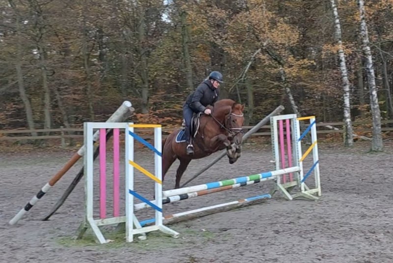 Timmy is een bijzonder sympathieke kleine ruin, een ruin met een vriendelijk uiterlijk die meteen de aandacht trekt. Vooral zijn grote, zachte ogen en zijn vriendelijke aard maken hem tot een echt hartendier. Hij is gemakkelijk te berijden en te hanteren door zowel kinderen als volwassenen. Dankzij zijn formaat is hij geschikt voor ruiters van verschillende lengtes, ook grotere ruiters. Timmy overtuigt met nette bewegingen, is zeer licht te rijden en gemakkelijk aan te sturen. Hij vormt een mooi plaatje onder de ruiter. Ook in springen doet Timmy al eerste ervaring op en heeft hij al twee keer succesvol deelgenomen aan een springles. Hierbij toont hij veel plezier en leergierigheid. Met verdere begeleiding is hij zeker ook geschikt voor kleinere wedstrijden. Ik denk dat hij goed in de smaak valt bij de jury’s. Vooral in het terrein gaat Timmy met veel betrouwbaarheid en plezier – onbevreesd, aangenaam en altijd ontspannen. Dankzij zijn geweldige karakter en zijn kalmte is hij ook uitstekend geschikt voor minder ervaren ruiters en zou hij bovendien een ideaal therapiepferd zijn. In de omgang is Timmy een ware schat: knuffelbaar, mensgericht en goed met andere paarden. Hij kent zowel boxen met paddock als een open stal en past zich probleemloos aan. Een paard dat door zijn uitstraling en zijn lieve aard meteen enthousiasmeert en een trouwe partner wordt voor het hele gezin. 7 jaar, hengst, 1,54 m Klinisch gezond, geen afwijkingen Voor nog meer foto’s, video’s en kleine inkijkjes in het dagelijks leven van onze paarden, neem een kijkje op Instagram: [maresi_lange]. Voel je vrij om alvast een kijkje te nemen en onze vierbenen wat beter te leren kennen. Je vindt meer foto’s, video’s en kleine inzichten in het dagelijks leven van onze paarden op Instagram: [maresi_lange]. Neem gerust een kijkje en leer onze paarden alvast wat beter kennen. De beschrijving van het paard is gebaseerd op subjectieve indrukken en ervaringen van onze zijde en vormt geen garantie of bevestiging van eigenschappen. Proefritten gebeuren op eigen risico. Verkoop gebeurt in opdracht. Voor het bekijken of proefrijden van het paard vragen wij een vergoeding van 30 euro. Deze wordt uiteraard verrekend bij aankoop van het paard.
