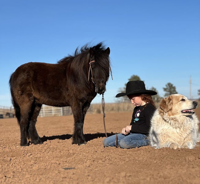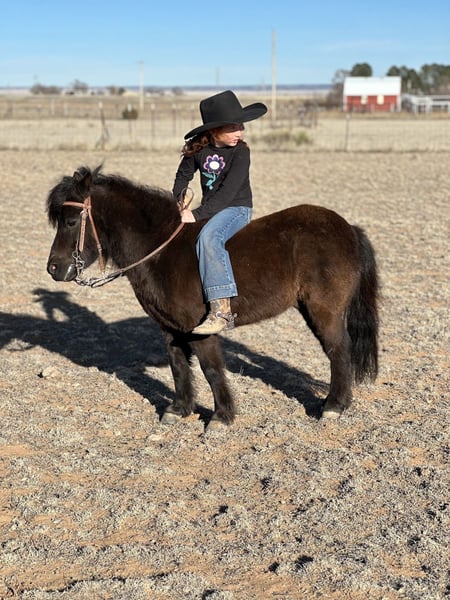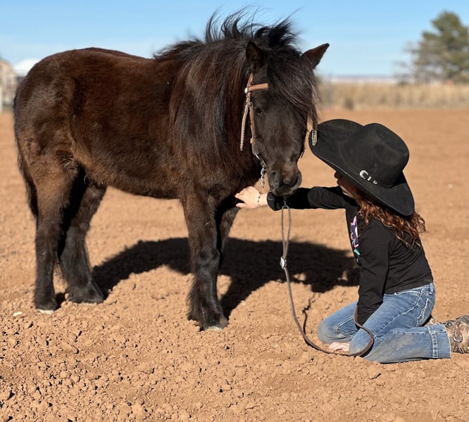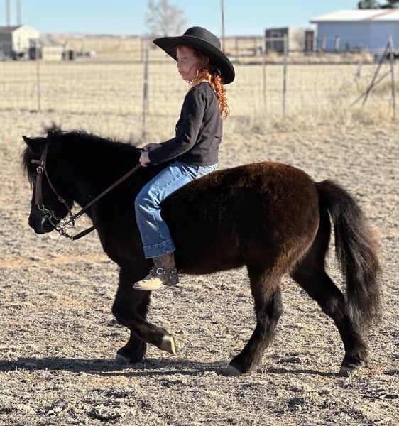 ℳ𝒶𝓇𝒸𝒽 ♦️𝐑𝐈𝐃𝐄𝐑'𝐒 𝐂𝐇𝐎𝐈𝐂𝐄♦️ Happening now thru MONDAY | MARCH 9th - Available EXCLUSIVELY on HorseBid's website! For more details and to register visit: www.Horsebid.com CONSIGNOR CONTACT: Zia Gililland 432-448-7304 LOCATION: Edgewood, NM BREED: Pony REGISTERED: No COLOR: Black HEIGHT: 38” AGE: 7 GENDER: Gelding Jet-Black Showstopper with the Ultimate Handle Meet Blackjack — a fancy, beautiful, gentle jet-black pony that’s as honest as they come. If you’re looking for a true zero-BS pony with a handle to match his style, this is your guy! Standing 38” tall with a dreamy, long mane and tail, Blackjack is as eye-catching as he is dependable. He is the definition of a true point-and-go pony. His zero-fuss demeanor makes him the ideal kids pony — he will only go as slow or as fast as you ask, allowing the littles to learn and grow at their own pace. His fancy handle only makes it that much easier for young riders to feel confident and in control. His trot is smooth as butter (just ask my 6-year-old daughter!), and he easily steps into a lope , loping soft, smooth one-handed circles. When his little rider says “whoa,” Blackjack will drag his little hiney and stop like a seasoned pro. Blackjack has been ridden outside, helped bring up cattle, and has been through the barrels and poles. He is absolutely zero buck, zero freshness, no rear, no bolt, and not buddy or barn sour. Blackjack is a GOOD pony — the kind that’s hard to find and even harder to replace. Please don’t hesitate to call with any questions: 432-448-7304 📍 Shipping can be arranged