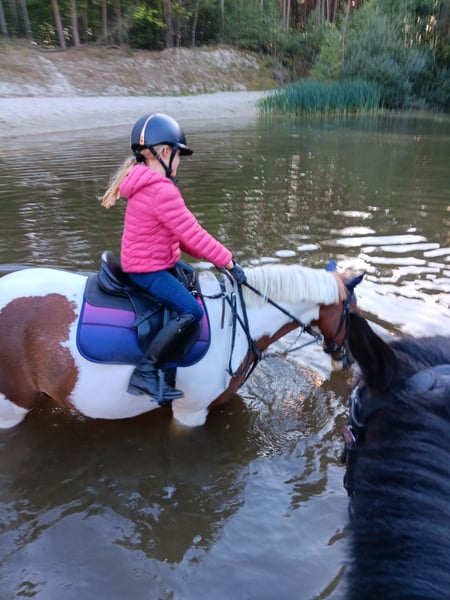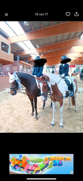 Zum Verkauf steht ein 9-jähriger Ponywallach, der auch Erwachsene sehr gut abdeckt. Ein absolutes Verlasspony mit tollem Charakter - ideal als Kinder- oder Familienpony. Er ist geländesicher und wurde bereits oft mit in den Urlaub genommen. Auch von Kindern ist er sowohl in der Bahn als auch im Gelände jederzeit sicher zu händeln. Im Umgang ist er schmiede- und verladefromm und insgesamt sehr unkompliziert. Meine zehnjährige Tochter kann ihn ganz alleine fertig machen. Außerdem bringt er reichlich Turniererfahrung mit: - mehrfach platziert von Führzügelwettbewerb bis A-Dressur - kombinierte E platziert - zahlreiche Jugendreiterwettbewerbe gewonnen - Springreiterwettbewerb gewonnen und mehrfach platziert - WBO-Springen 60 cm platziert. Ein echtes Allround-Pony, das sowohl im Sport als auch in der Freizeit überzeugt und seinem Reiter Sicherheit gibt. Er ist immer händelbar und artig, auch wenn andere Pferde in der Halle mal wilder sind. Selbst bei absoluten Anfängern ist er jederzeit kontrollierbar, bei etwas stärkeren Reitern hat er aber auch genug go, dass er problemlos in der A-Dressur geritten werden kann. Auch Abteilungsreiten ist überhaupt kein Problem. Er ist herdenverträglich und kennt sowohl Boxenhaltung mit täglichem Weidegang als auch Offenstallhaltung. Wir haben ihn 5jährig gekauft und er war bei uns immer gesund. AKU kann auf Wunsch gerne gemacht werden. Weitere Bilder und Videos gerne auf Anfrage.